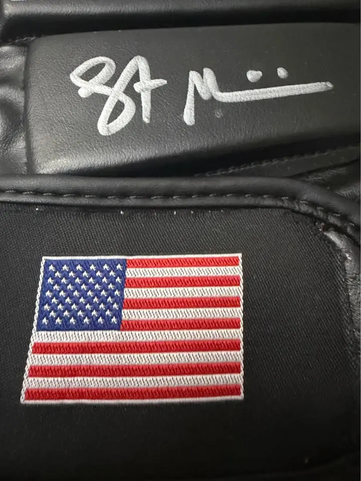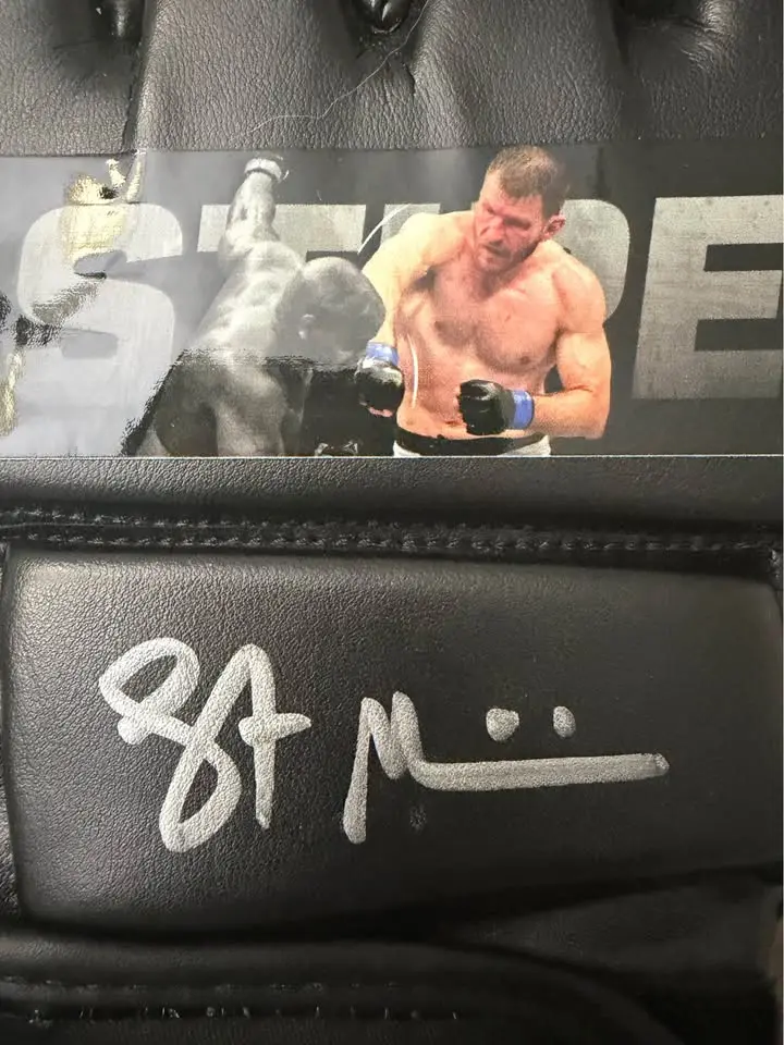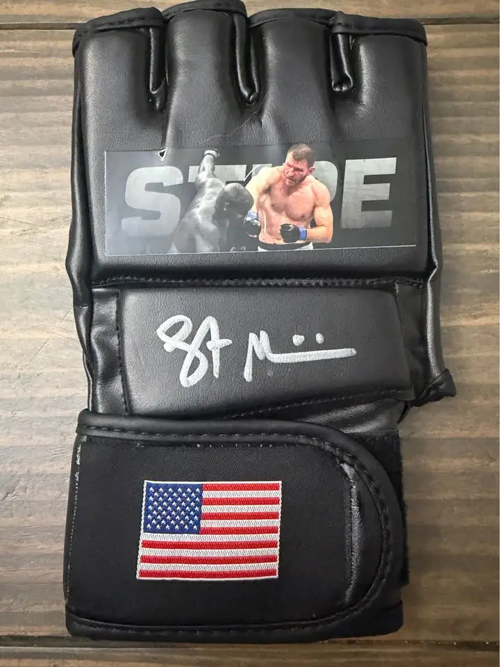 Up for sale is a Stipe Miocic hand-signed MMA glove, signed nicely in silver paint pen. This is an awesome collectible for any UFC / MMA fan and looks great displayed in a man cave, gym, sports room, or autograph collection.