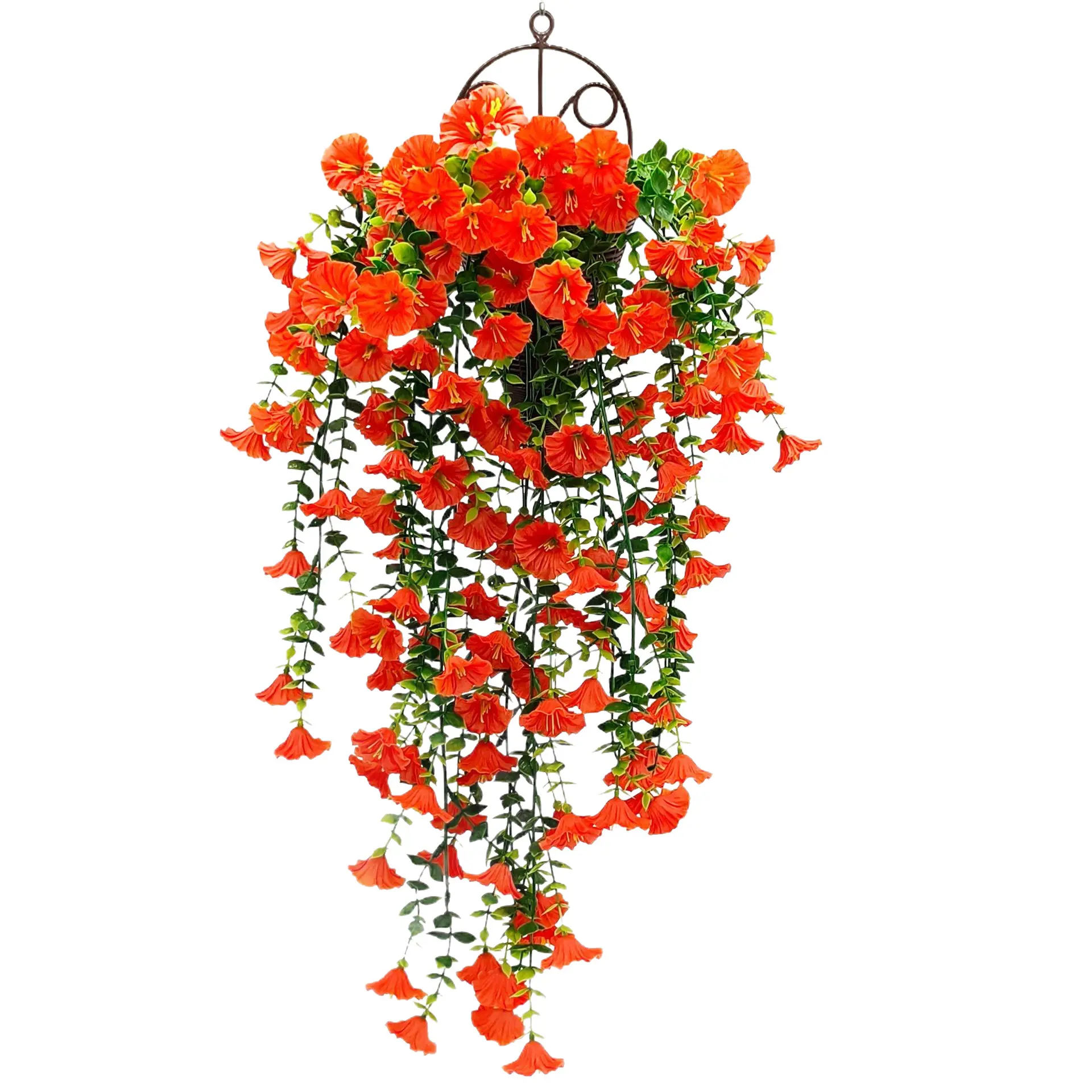 2 Set Artificial Outdoor Flowers Artificial Hanging Flowers Plant UV-resistant Windproof Waterproof Faux flowers with 2 Hanging Basket 2 Hanging Planters 40 Flowers for Spring Summer Porch Home Outdoor Decoration Garden Pot Front Courtyard Patio Lawn