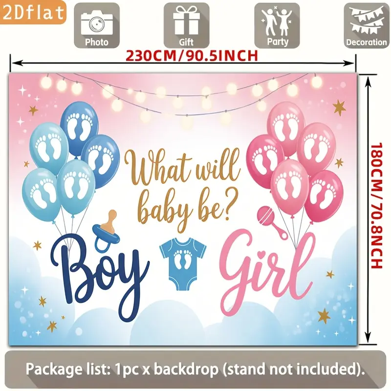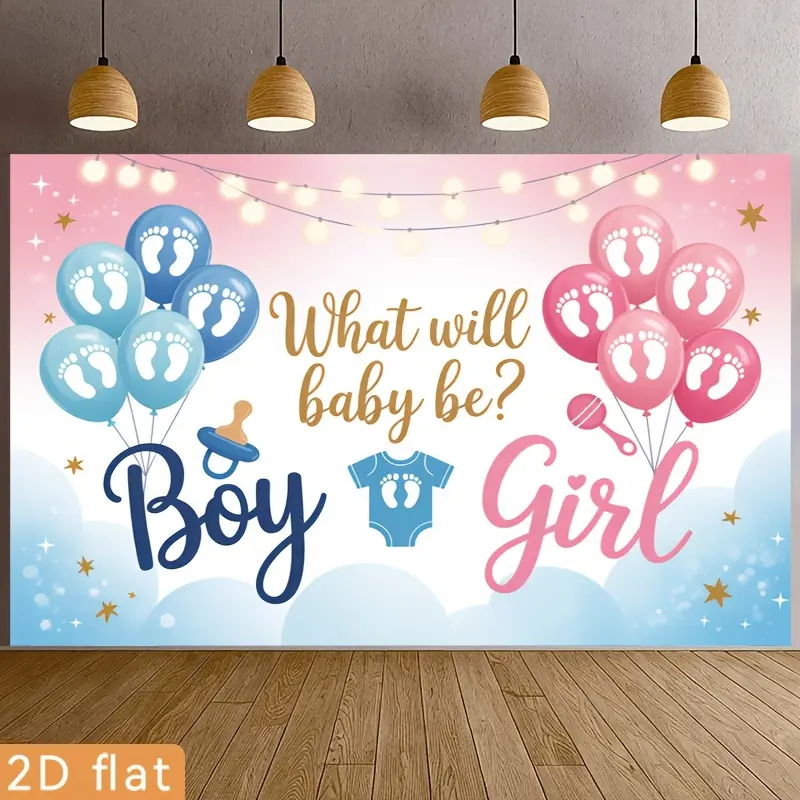 2D Flat, Party Banners 2D Flat Banner, 1pc Polyester Backdrop Gender Reveal Announcement Banner with Pink Blue Color Scheme, for Party Decor Room, Club, Farm, Garden, Home, No Electricity, Easy to Hang Gift f