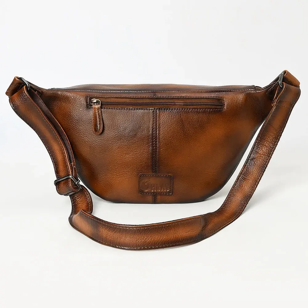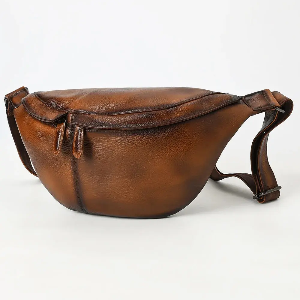Premium Authentic Full Grain Genuine Leather. Luxuriously soft and pliable, this leather ages gracefully with wear, showcasing its enduring beauty.