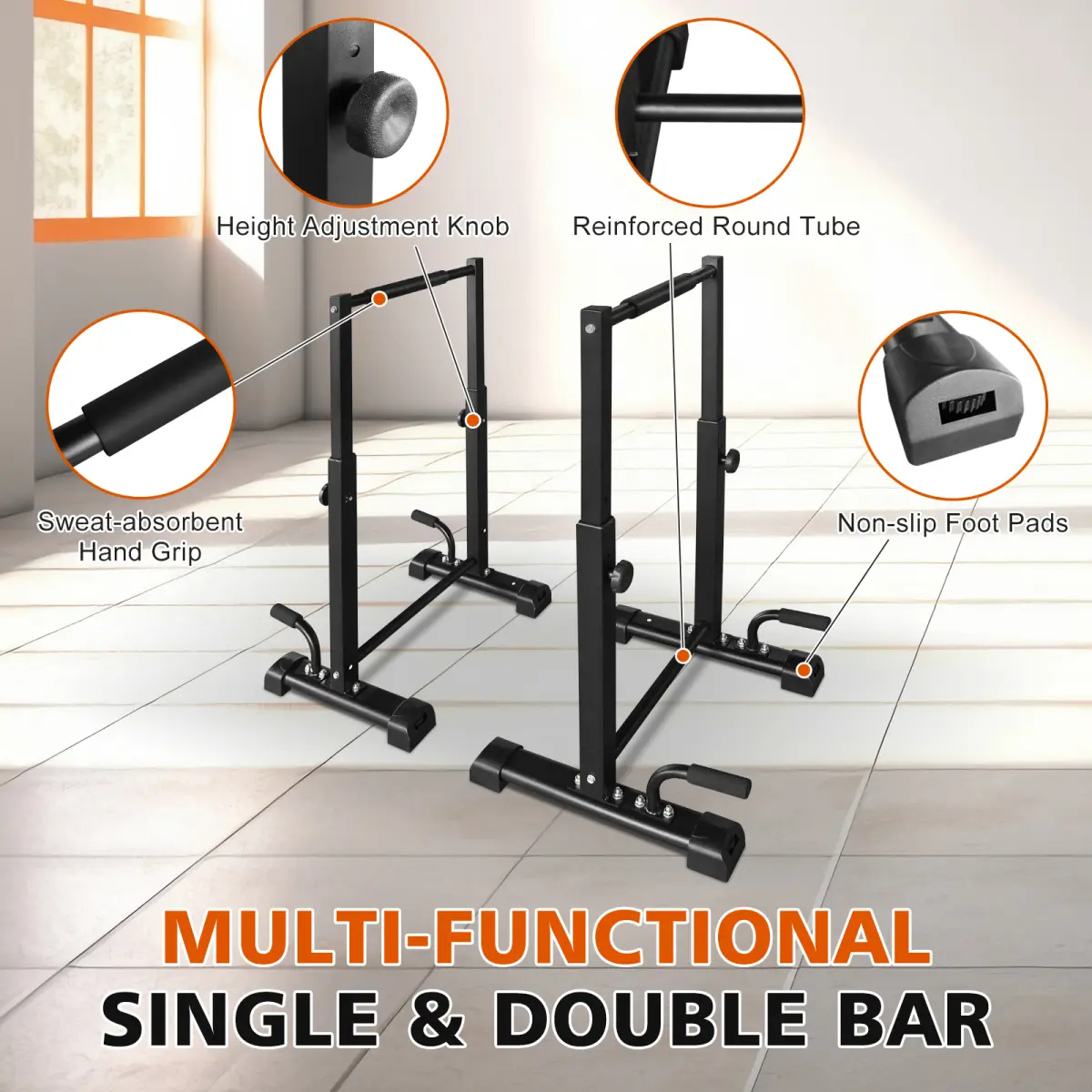 ·6-Level Height Adjustment – Height adjusts from 36.6" to 46" across 6 positions. Suitable for exercises including push-ups, L-shaped sit-ups, and triceps dips.