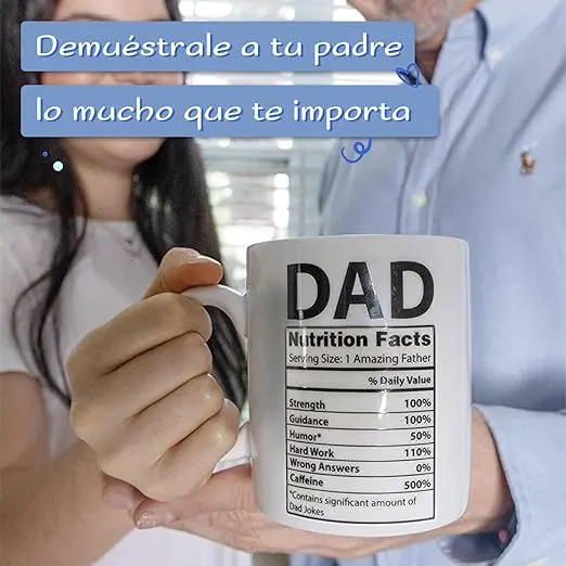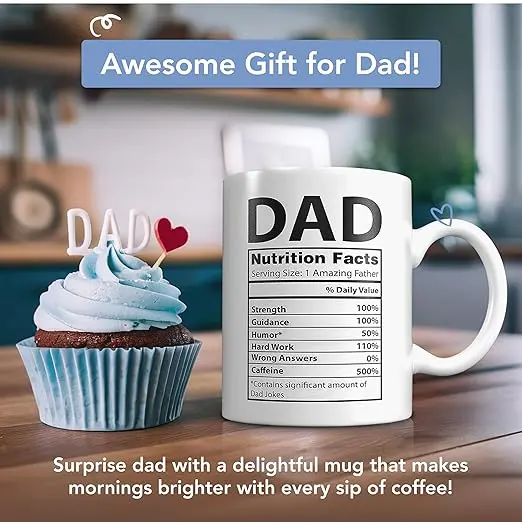 Funny Gifts for Dad - 11 oz Ceramic Dad Coffee Mug from Daughter or Son - Daddy Cup with Nutritional Facts - Thoughful Birthday or Father’s Day Present - White Mug for Morning Coffee