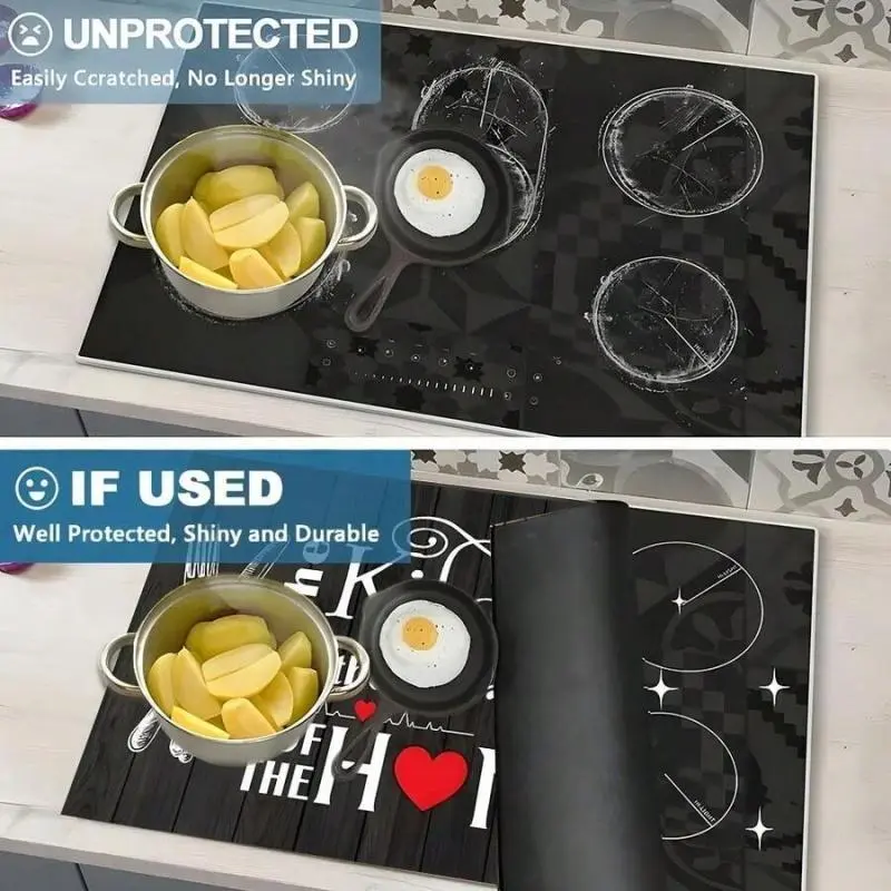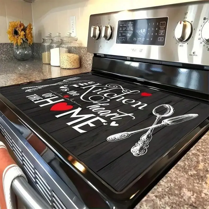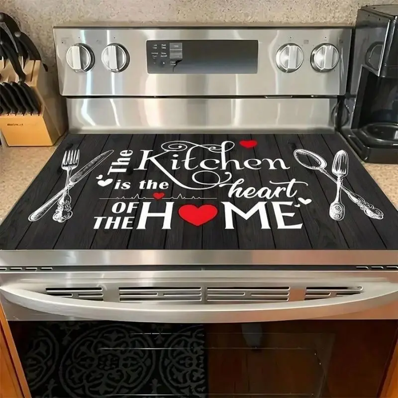JOYFINITY 1PC Large Stove Cover 28.4*20.5 Inches - Featuring A "Wood Grain Heart" Design, Non-Slip Rubber Backing, Durable Stovetop Protector With Scratch-Resistant Surface, Ideal Gift For Coffee Lovers, Easy-To-Clean Material, Home Decor