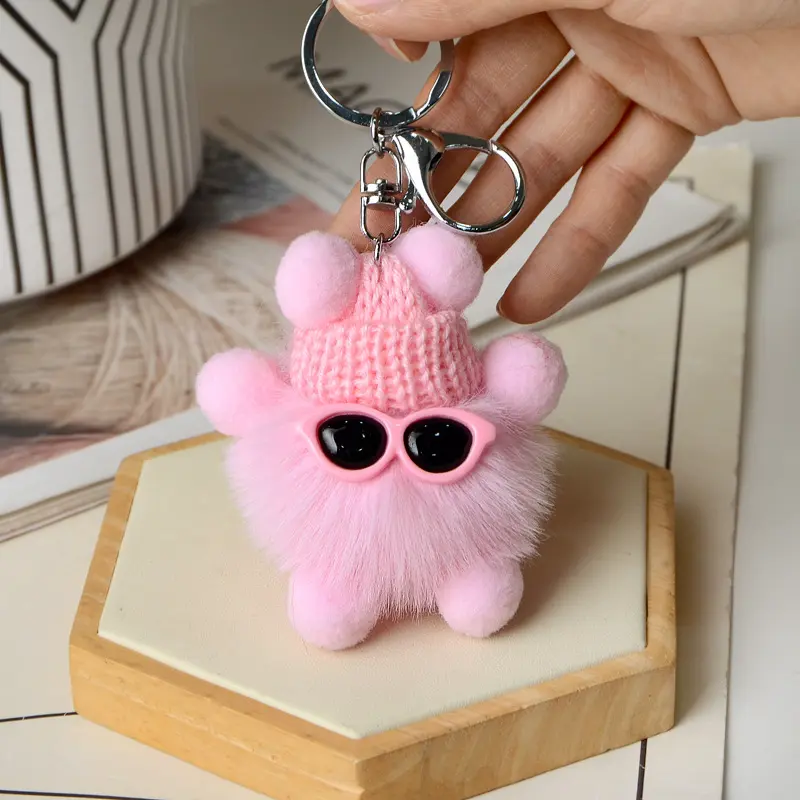 Cute faux rex rabbit fur plush little coal ball bag pendant, coal ball doll ornament, cartoon toy car keychain