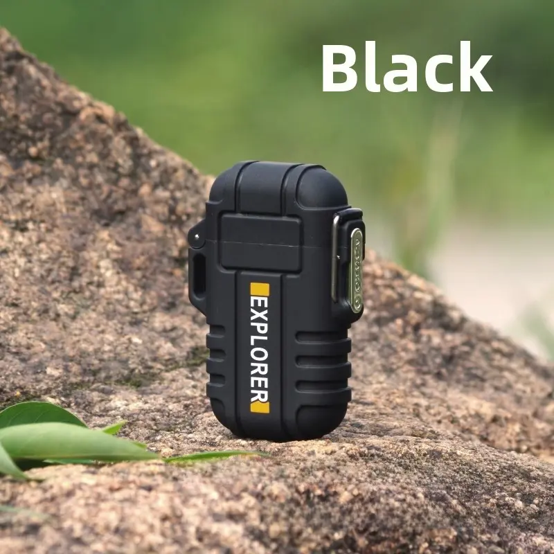 Transparent shell waterproof electronic pulse lighter, outdoor windproof lighter, waterproof dual arc lighter