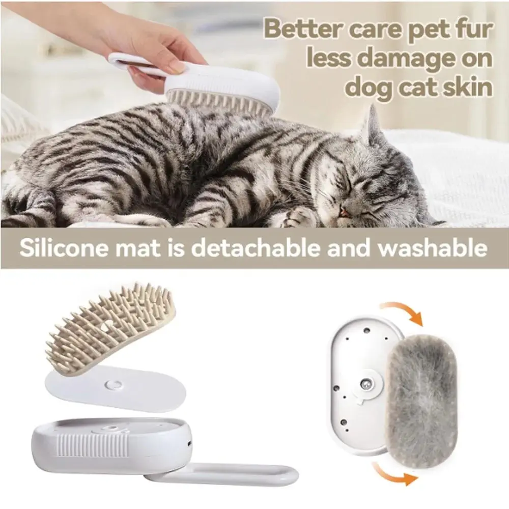 [3 en 1 Cepillo Vaporizado para Gatos] Con este cepillo para gatos, puedes satisfacer sin esfuerzo las necesidades de aseo de tu gato, incluyendo peinado, eliminación de mudas, masaje y limpieza con spray, proporcionando una solución de aseo integral para tu amigo peludo. Tu mascota disfrutará del delicioso tiempo de cepillado que pasará contigo. Durante el proceso de aseo, la suave niebla liberada ayuda a eliminar la electricidad estática y evita que el pelaje vuele.
