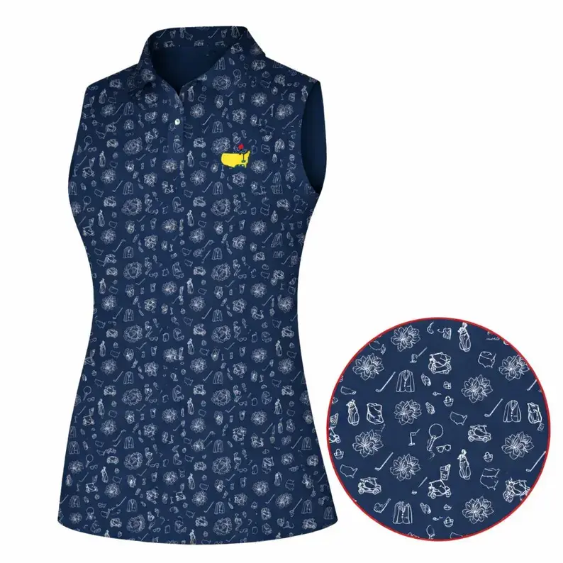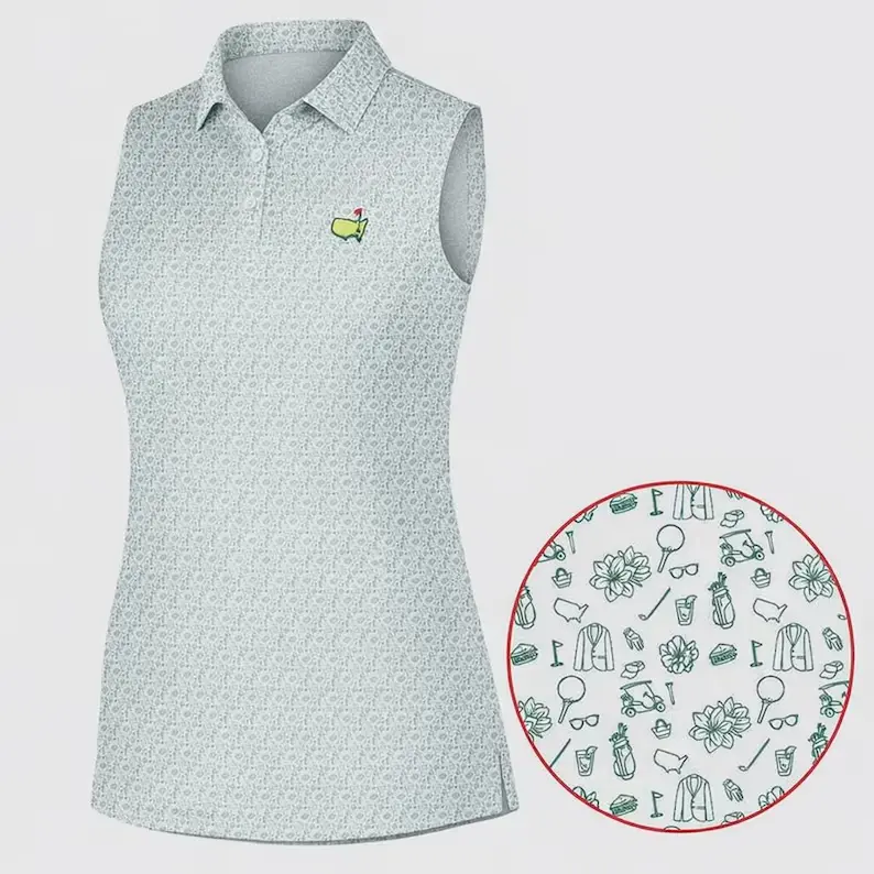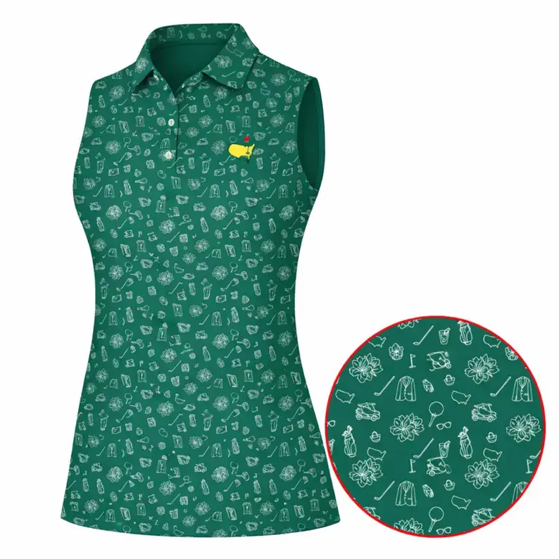 Women Sleeveless Golf Polo Shirt Masters Inspired, Augusta Green Pattern Polo, Ladies Summer Golf Outfit, Golf Shirt Gift for Female Golfer
