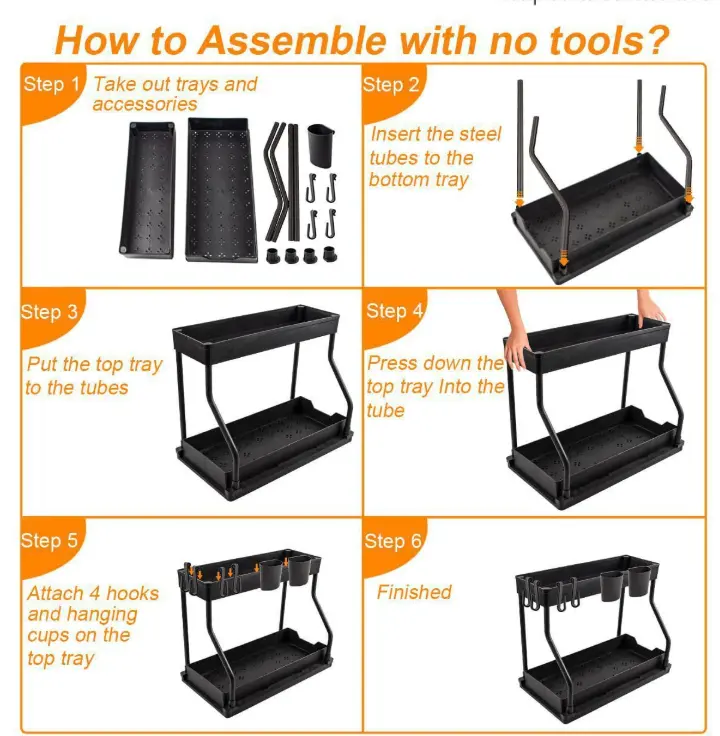 ·2-Tier Design: Maximizes vertical storage space with two sliding baskets that provide easy access to items stored in the back of cabinets