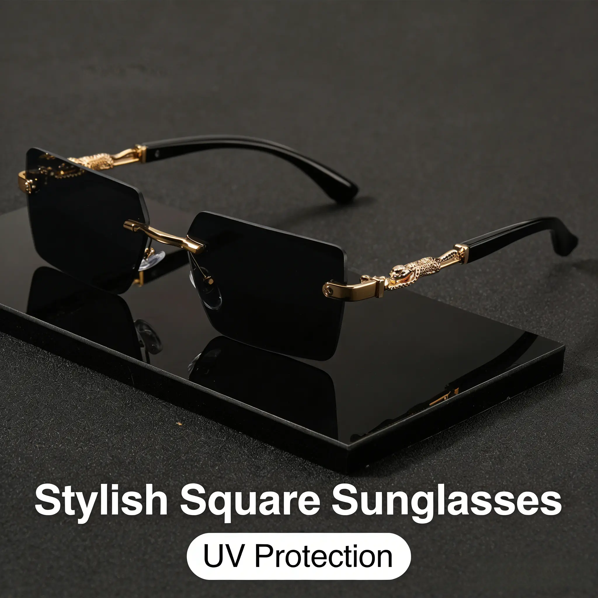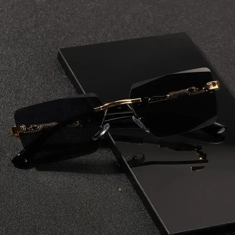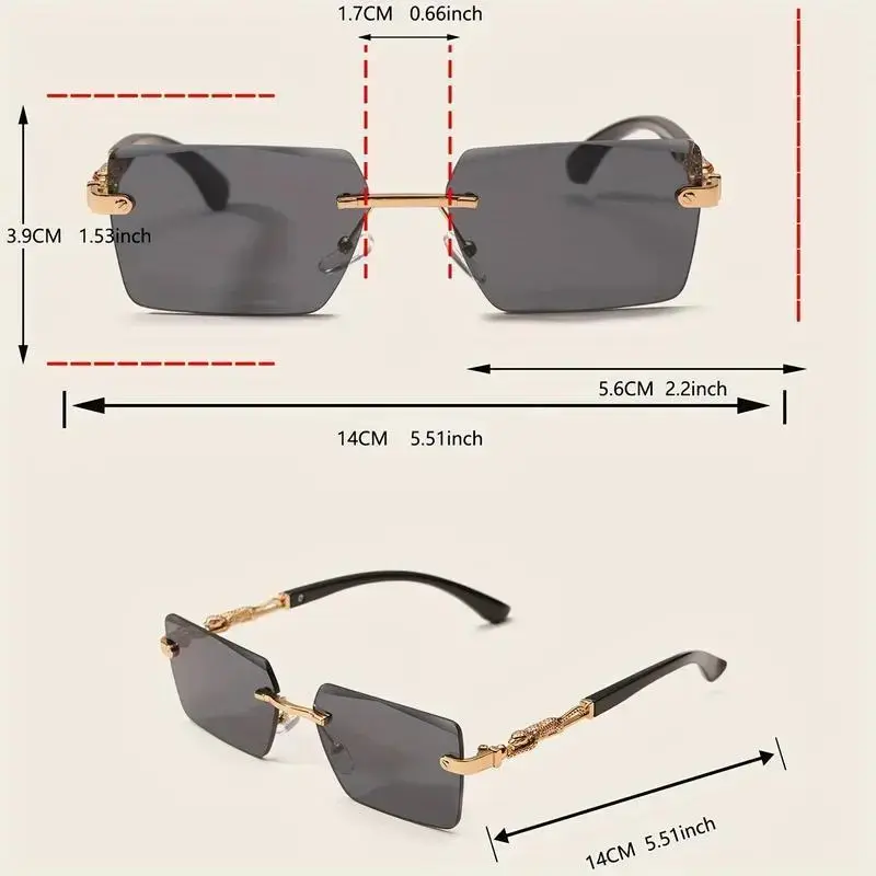 Y2K Streetwear Rimless Sunglasses | Leopard Detail UV400 Protection | Trendy Retro Shades for Summer Beach, Driving & Street Style
