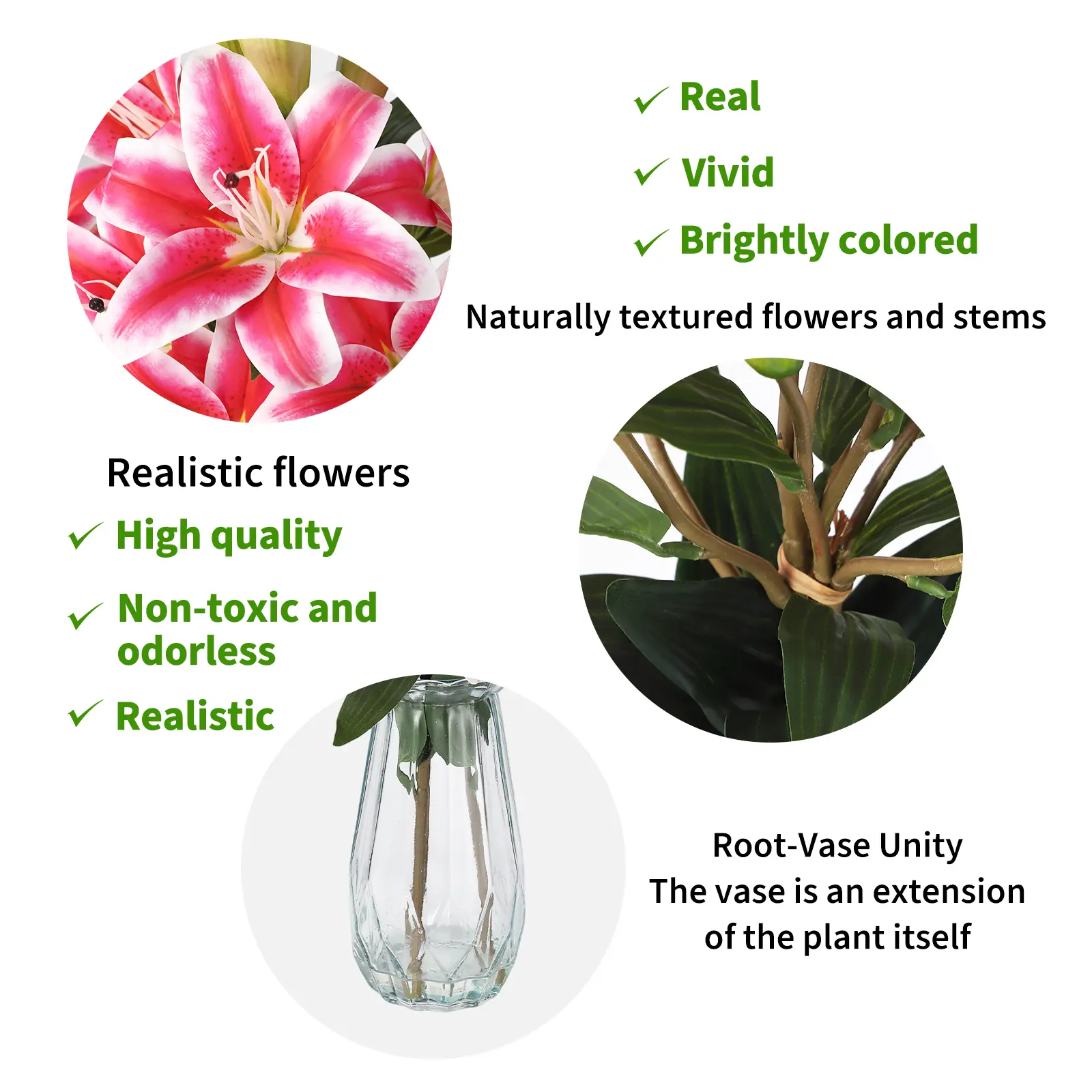 Constructed from child and pet-safe non-toxic materials. Simple to wipe or rinse clean for long-lasting use, saving money on repeated fresh flower purchases.