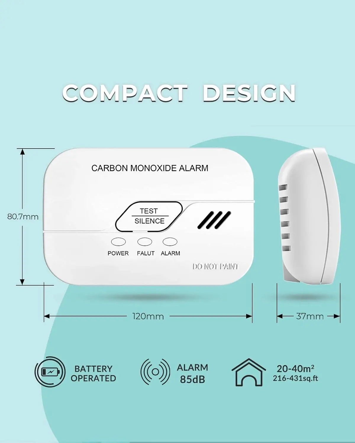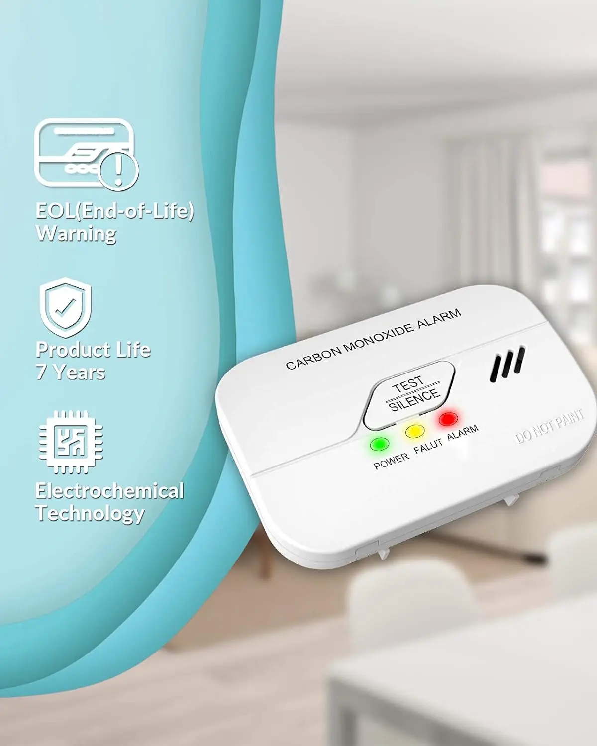 Ecoey Carbon Monoxide Detector CO Detector Alarm Battery Operated Low Battery Warning Figaro Sensor, FJ119 1 Pack
