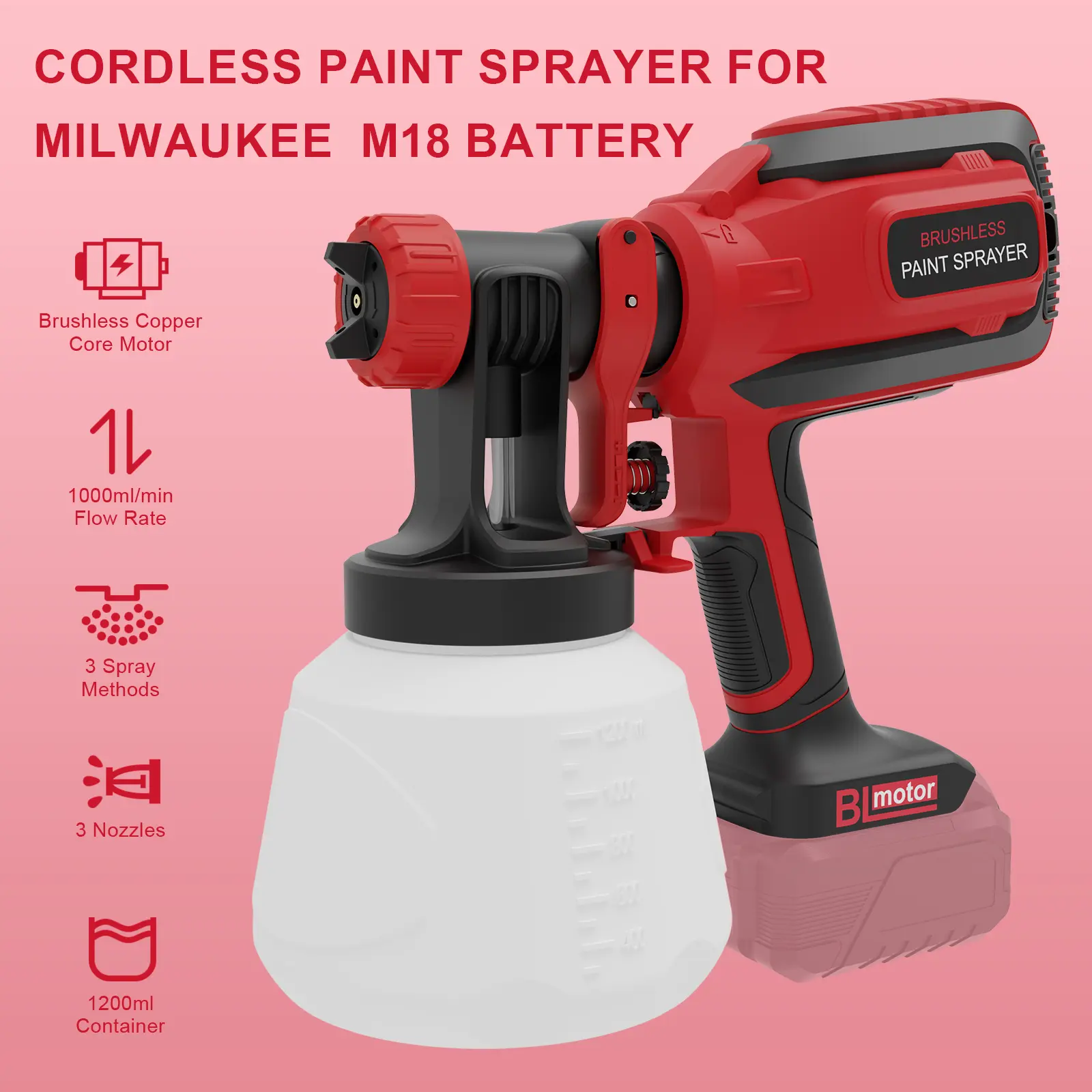 • Brushless Motor: Equipped with a high-efficiency brushless motor, ensuring quieter operation and a flow rate of up to 1000ml/min. Ideal for large-scale home renovations or DIY projects, providing a smooth and efficient spraying experience.