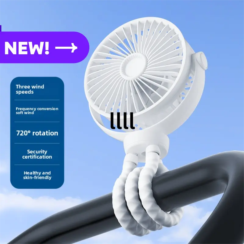 Portable Octopus Fan for Strollers, USB Rechargeable, Quiet & Foldable, Perfect for Outdoor Use