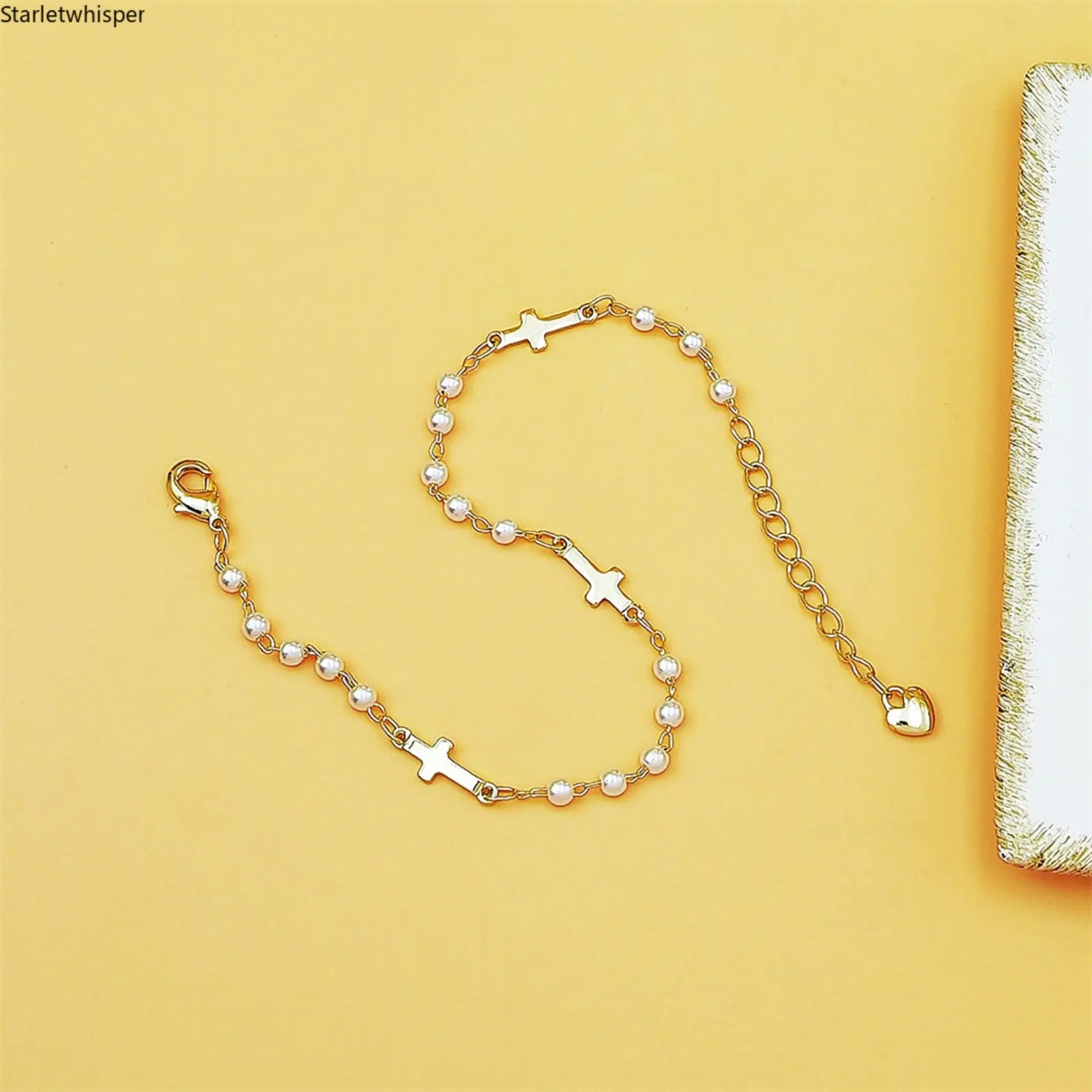 Trendy Pearl Lock & Cross Bracelet for Women, Minimalist Luxury Design, Delicate High-End Fashion Jewelry, Lightweight & Versatile for Daily Wear, Dates, Parties & Meaningful Gift Giving