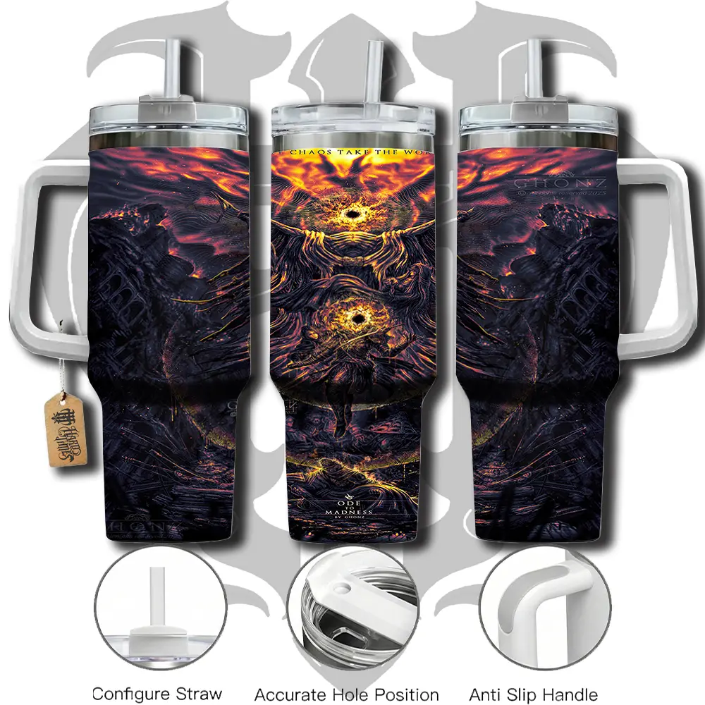HardTimesMerch - Frenzy Flame Elden ring #1 40oz Handle Tumbler Stainless Steel Travel Mug, Game Inspired Vacuum Insulated Cup, Large Iced Coffee Tumbler, Manga Fighter Drinkware, Gamer Gift for Him Her