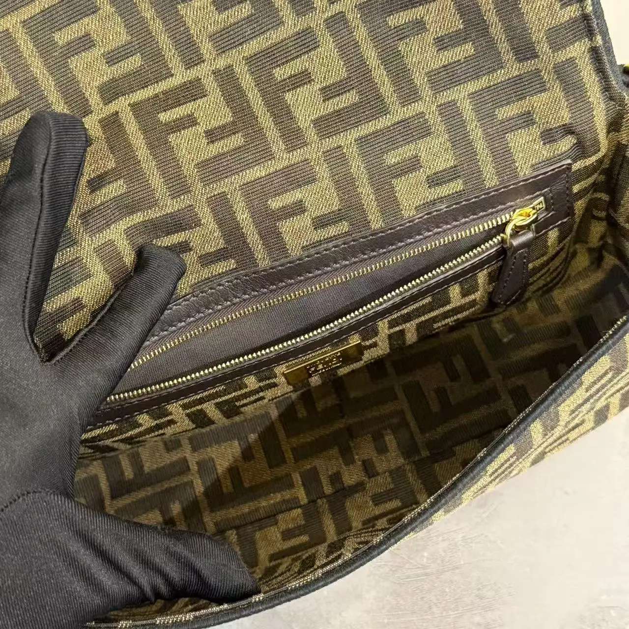 ✨ Elevate your style with the FENDI Brown Zucca Print Canvas Crossbody Bag. This bag features a distinctive Zucca print, adding a touch of elegance to any outfit. Perfect for those who appreciate designer accessories, it combines functionality with fashion. The canvas material ensures durability and a sleek look. Ideal for everyday use, it offers a versatile option for various occasions.