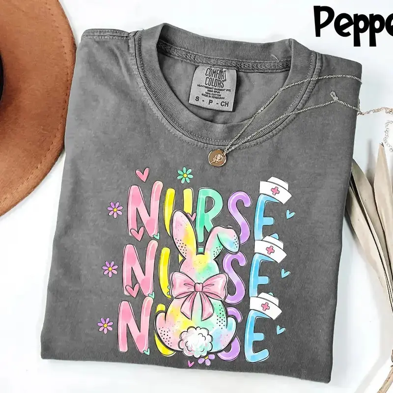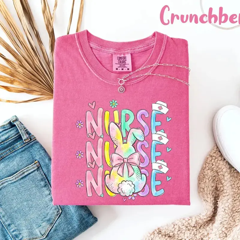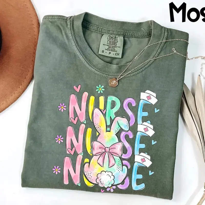 Comfort Colors Nurse Easter Shirt, Bunny Nurse Tee, Cute Holiday T-Shirt for Nurse Appreciation, Spring RN Gift