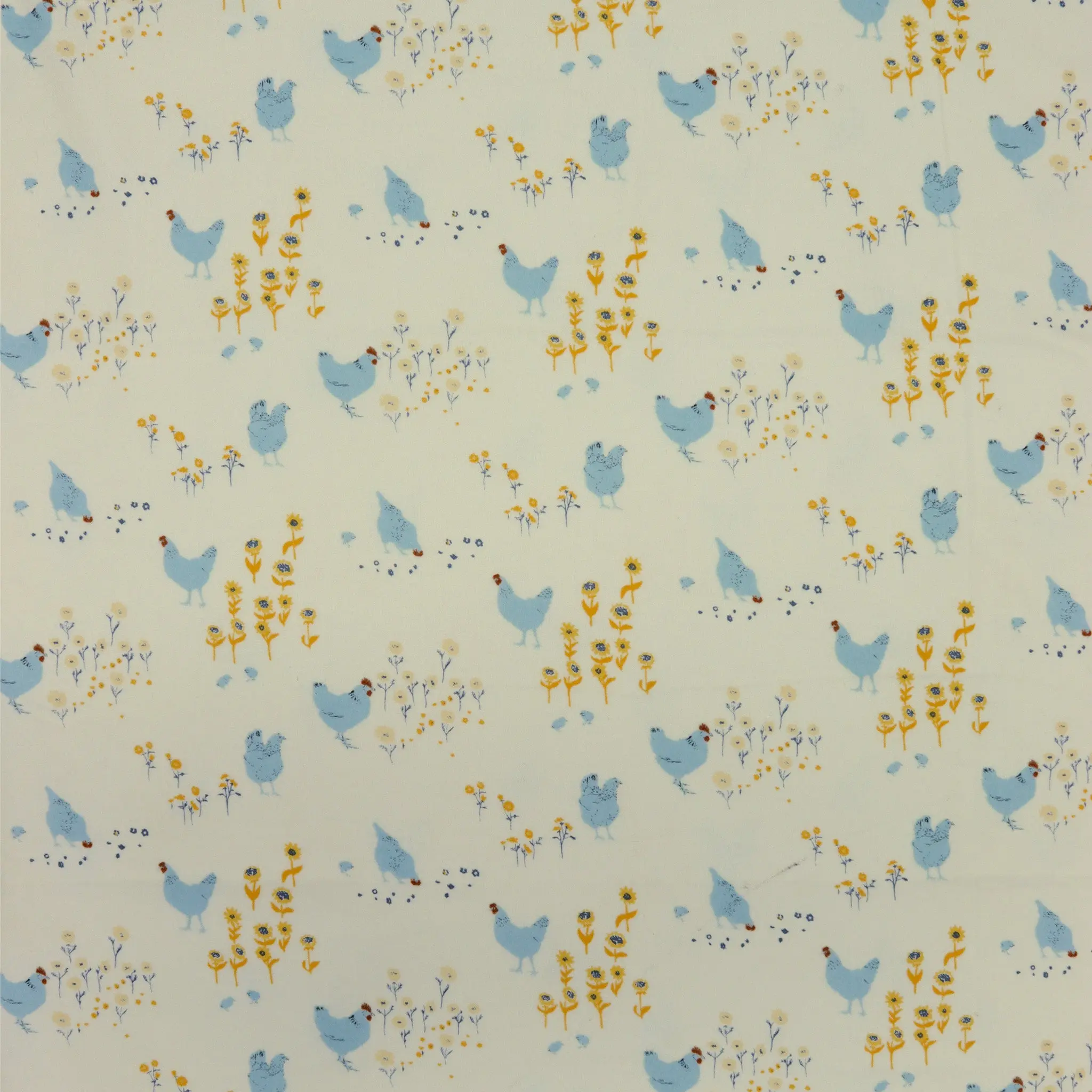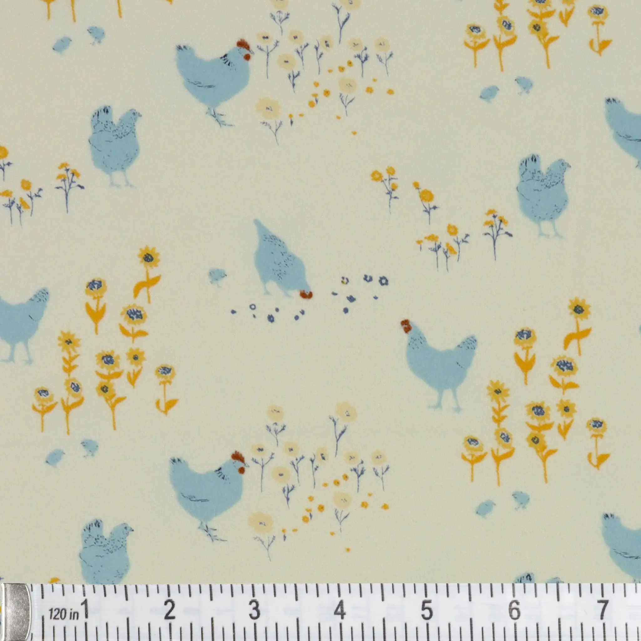 The Hens and Chicks Fabric Pattern brings a whimsical and charming countryside touch to any sewing project. Featuring adorable blue hens scattered among delicate golden wildflowers, this design captures a rustic yet playful aesthetic perfect for quilting, home décor, or children's projects. The soft color palette and delicate illustrations evoke a cozy farmhouse feel, making it a delightful addition to any fabric collection. Available in both cotton and flannel, this pattern offers versatility—whether you want the crisp, smooth finish of cotton for quilting and apparel or the warm, plush feel of flannel for cozy blankets and loungewear.