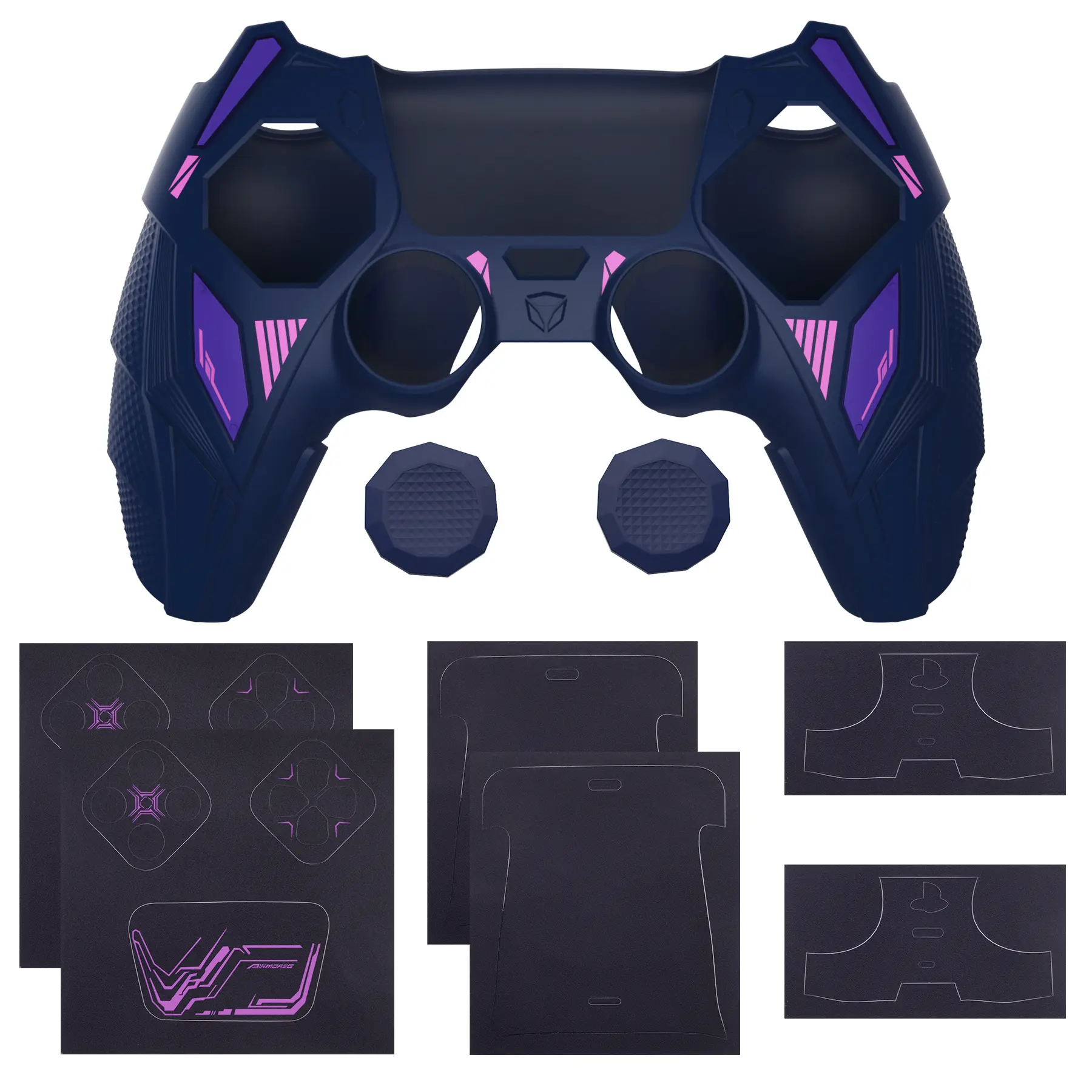 ·【All-in-One Controller Accessories Kit】Includes 1 silicone cover for PS5, 2 anti-slip joystick caps, and 1 matching touchpad sticker. A complete customization kit to protect, upgrade, and personalize your controller—great for players who want comfort and style in one set
