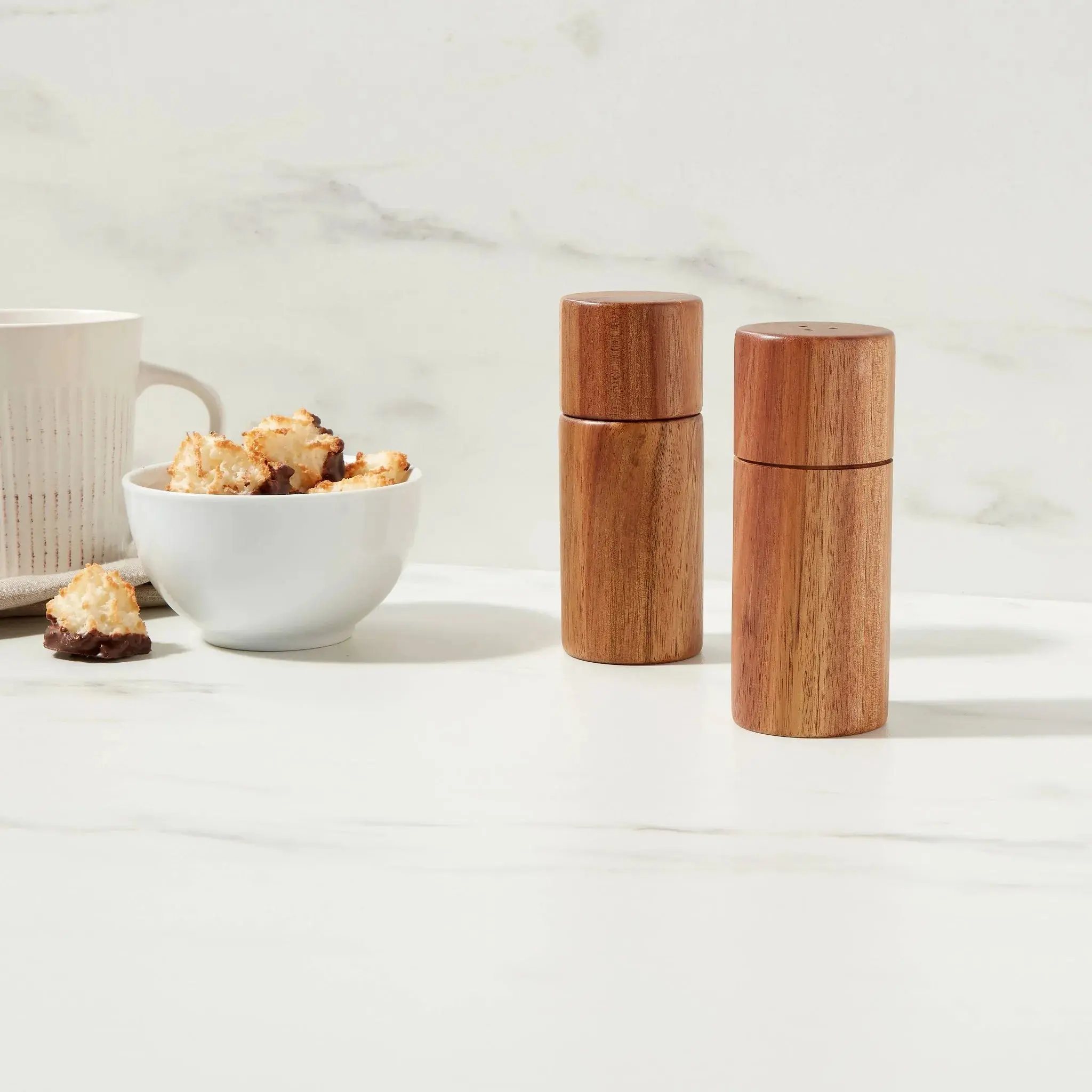 2pc Acacia Round Salt Shaker and Pepper Grinder Set