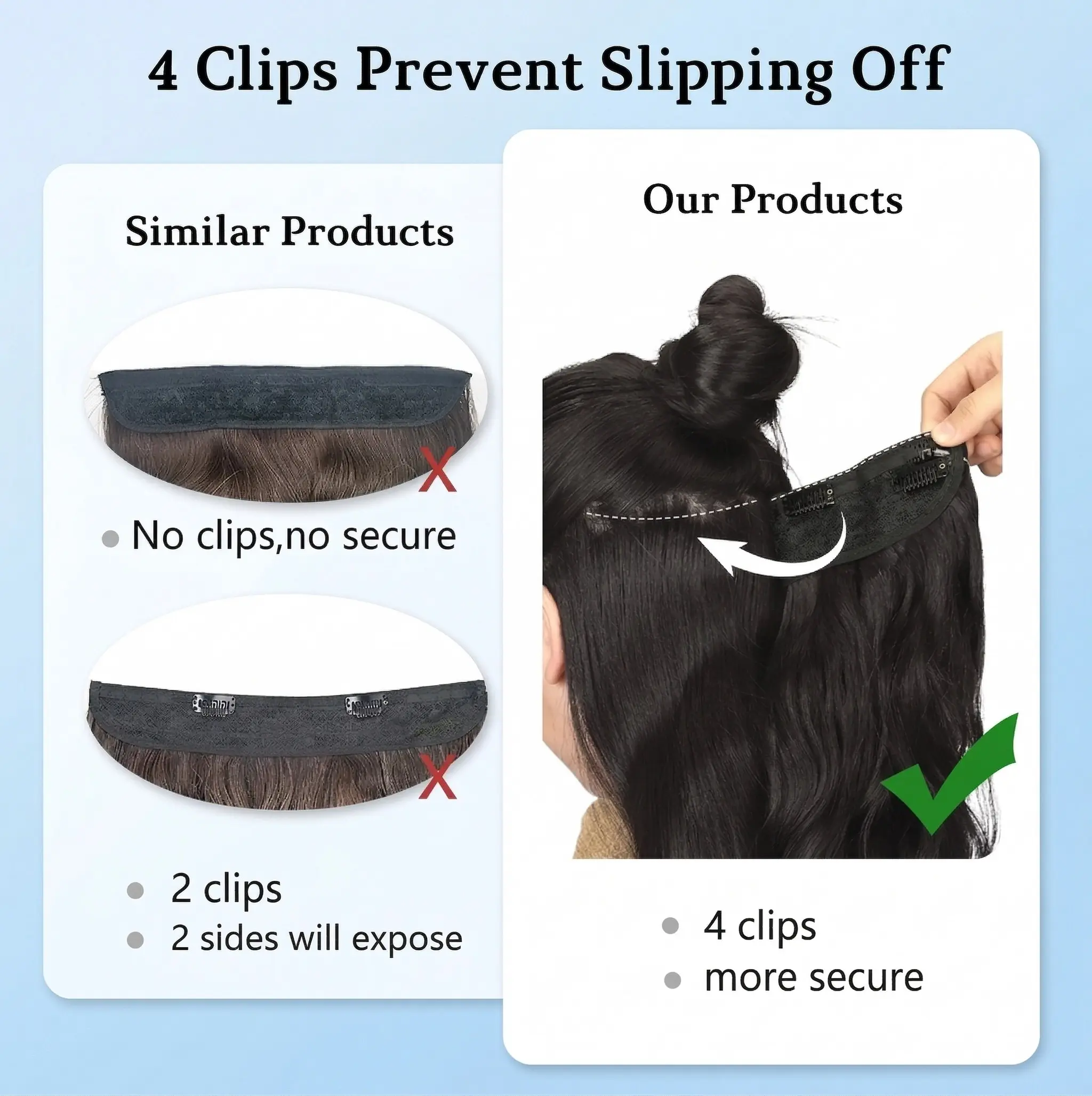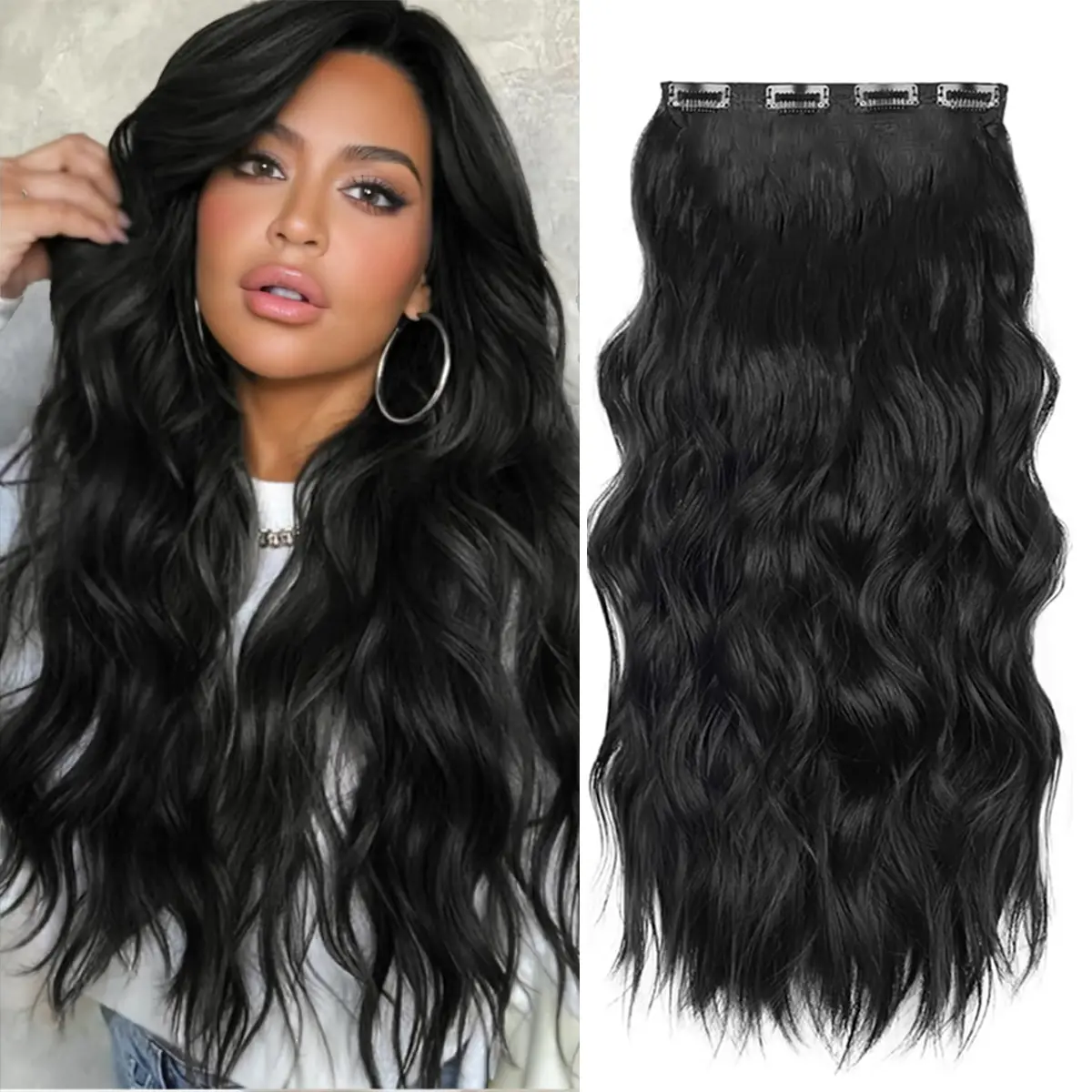[Material & Benefits] Our clip-in hair extensions are crafted from high-quality, heat-resistant synthetic fibers that closely mimic the look and feel of real human hair. The hair texture is soft and smooth, free from any harsh chemical odors, and blends seamlessly with your natural strands to create a completely natural, effortless look once worn.