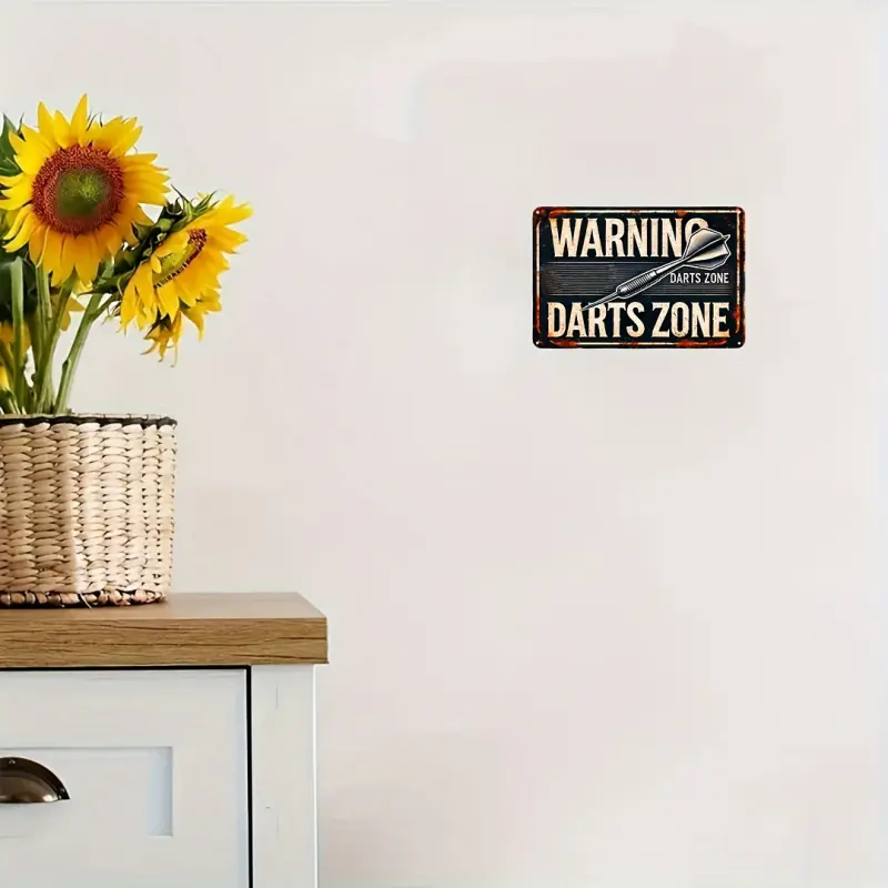 1pc 2D Plane Retro Metal Dart Board Sign, 12x8inch Wall Hanging Sign, Retro Warning Dart Board Area Decoration, Suitable for Home, Bar, Coffee Shop, Garage - Multi-purpose English Text Metal Wall Art, Metal Wall Art Decoration