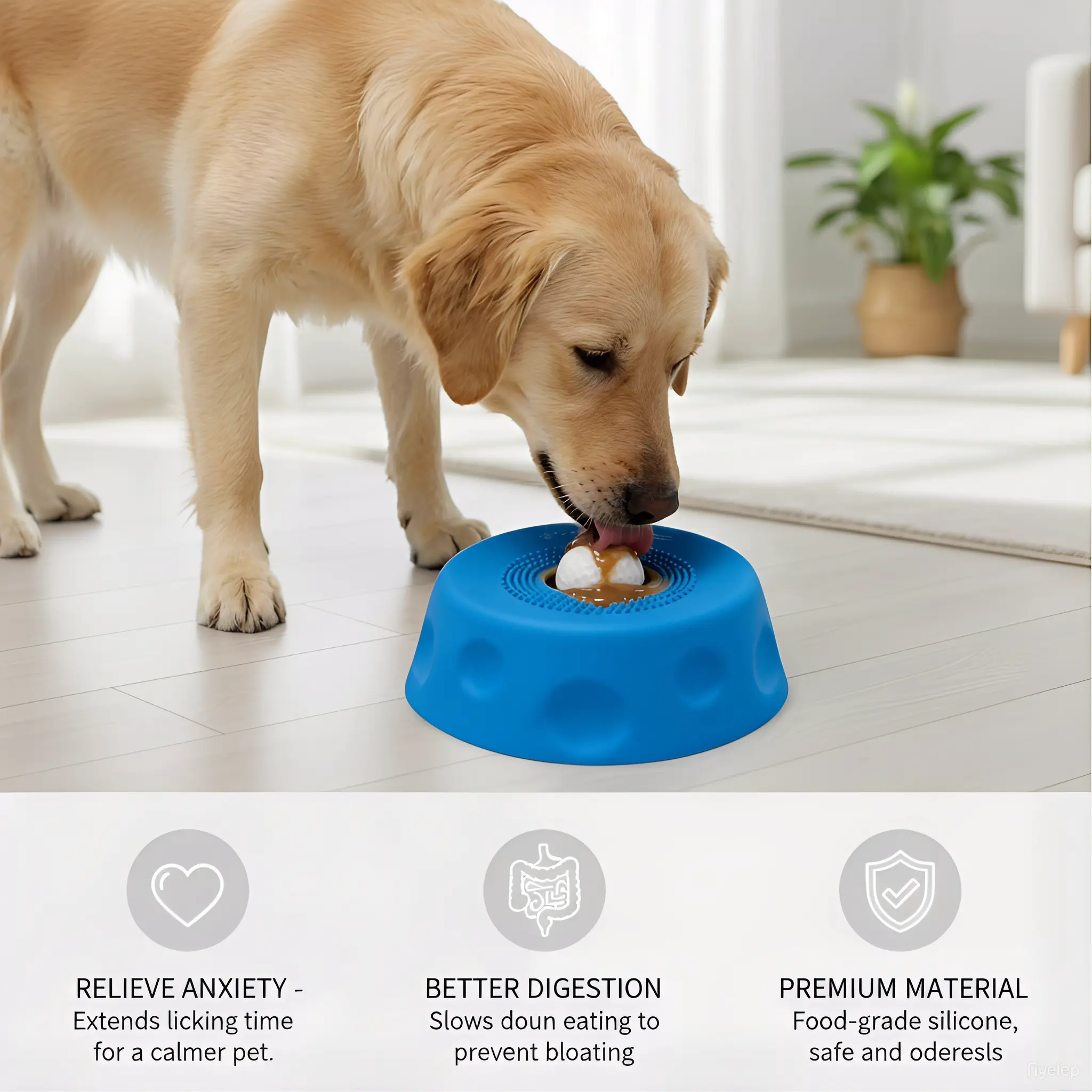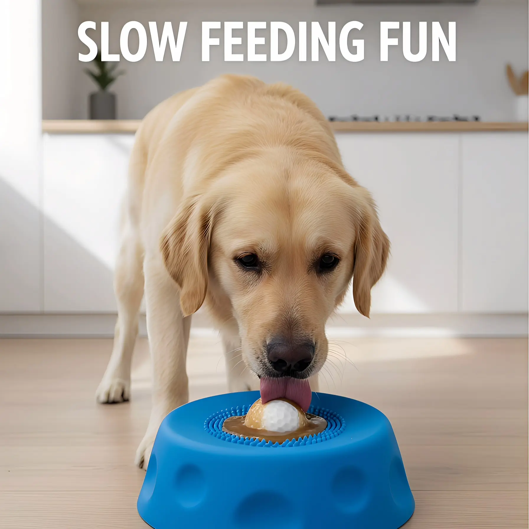 Slow Feeder Dog Bowl w/ Built-in Rolling Ball – Spill-Free Lick Bowl for Yogurt & Broth – Promotes Mental Stimulation, Slower Eating & Healthy Digestion