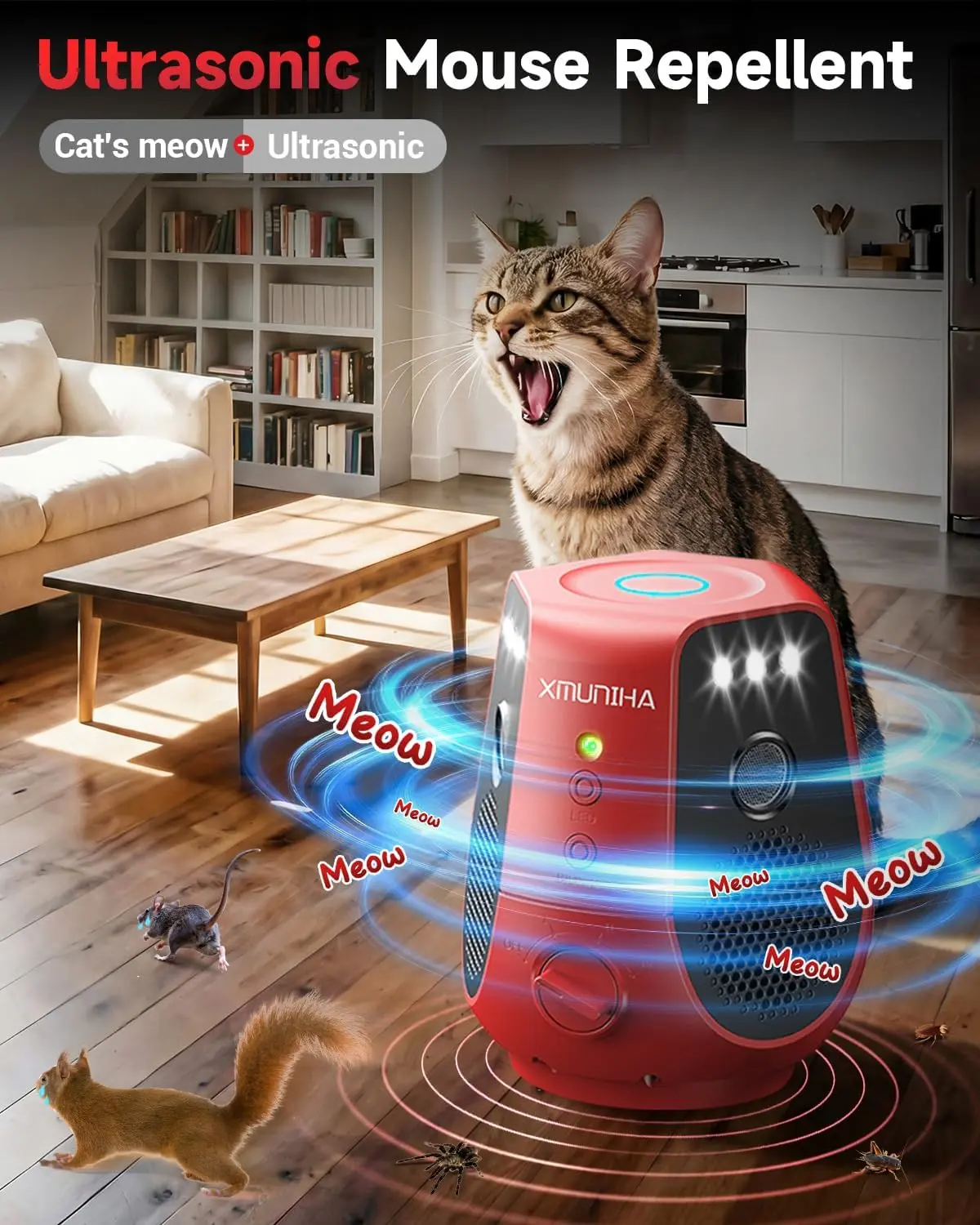 ·Upgraded Rat Repellent Function: Say goodbye to the trouble of constant harassment from mice! Our mouse repellent combines variable and fixed frequency ultrasonic, strobe lights, and PIR automatic sensors to repel mice around the clock. The newly upgraded bionic cat meow simulates the deterrent effect of natural enemies and effectively repels mice. Suitable for homes, offices, warehouses, and other places, easily protect your space from rodent infestation