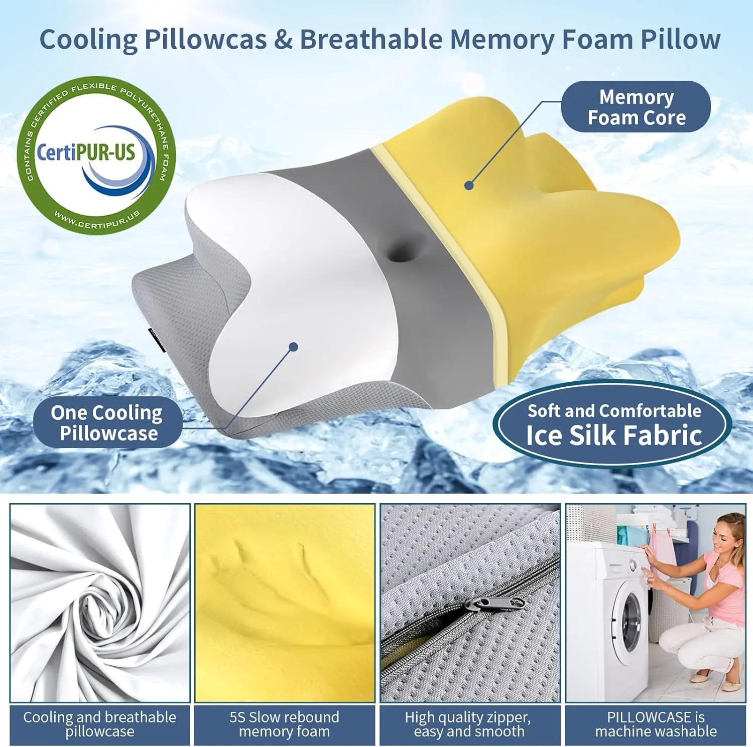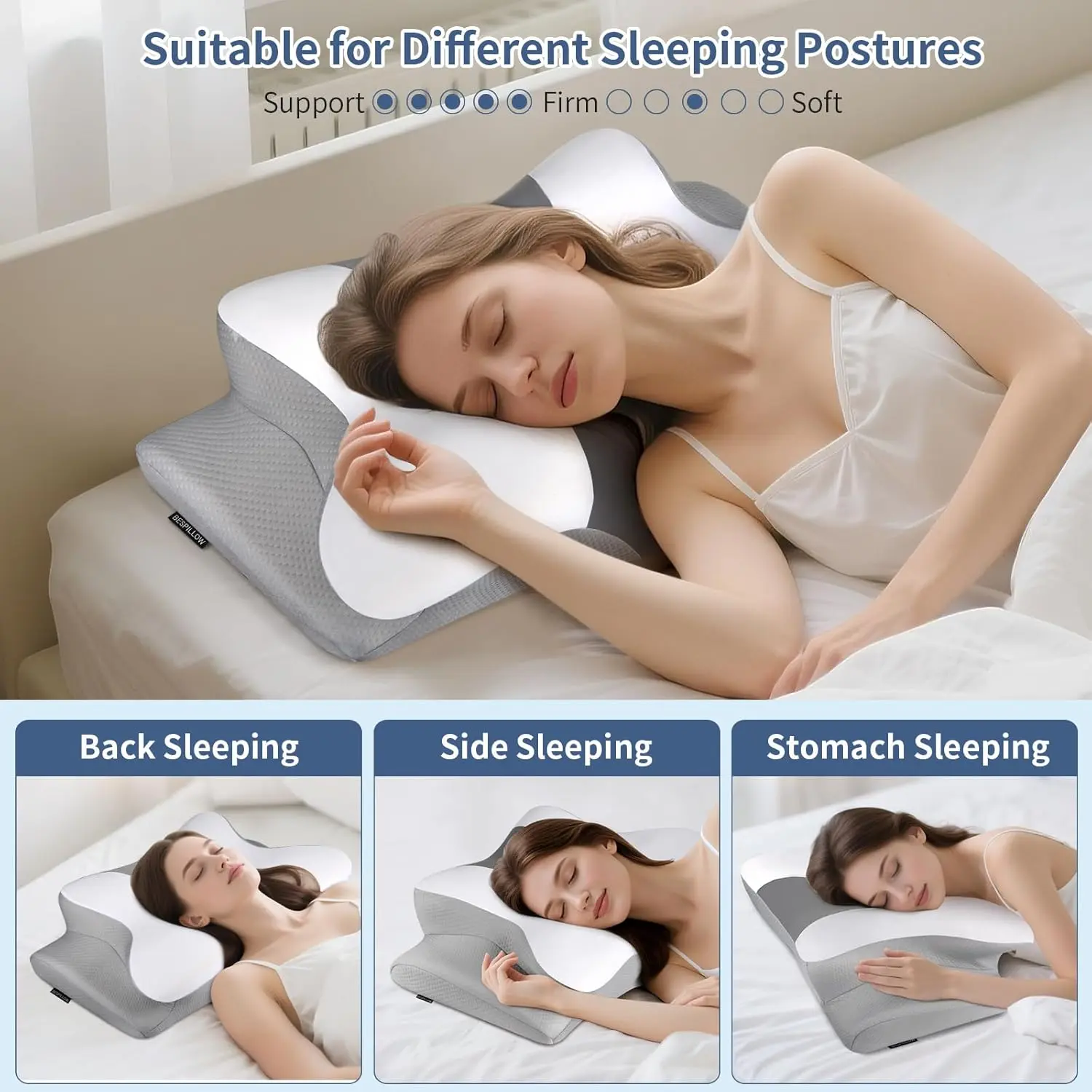 ·[CERVICAL NECK PILLOW FOR NECK SUPPORT] Combining traditional bed pillow comfort with contour pillow support, our butterfly pillow transforms your sleep. Its 15° tilted hollow concave surface gently cradles your head, maintaining your neck's natural curve and perfect spinal alignment. The unique butterfly shape evenly distributes pressure to soothe aching necks, while the neck pillow armrest area allows unrestricted arm positioning for extra comfort. Wake up feeling refreshed!