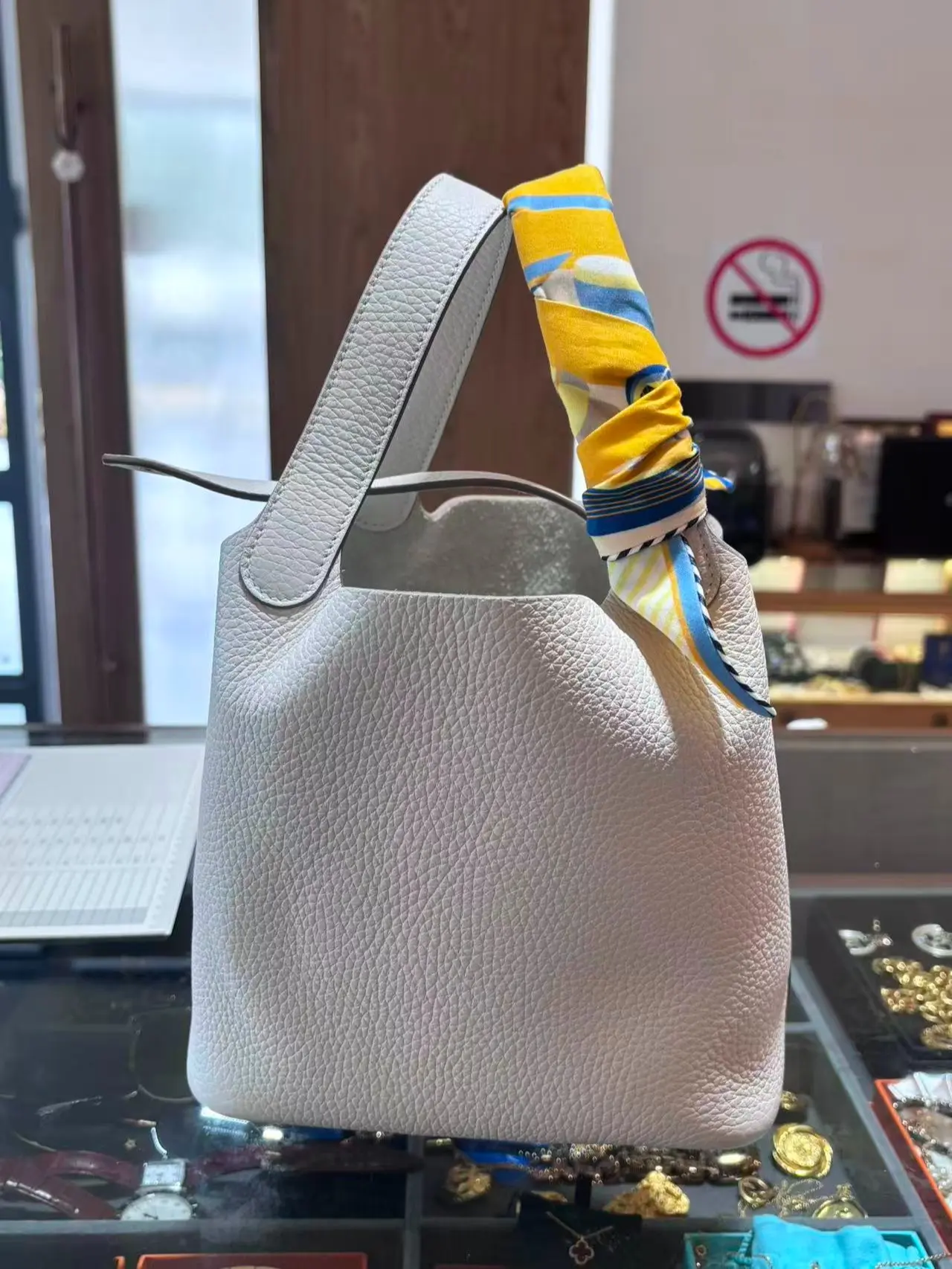 Pre-owned HERMÈS Hermes Picotin Lock 18 clemence bull calfskin, Gris Pale, gold hardware K stamp full set, prestine condition