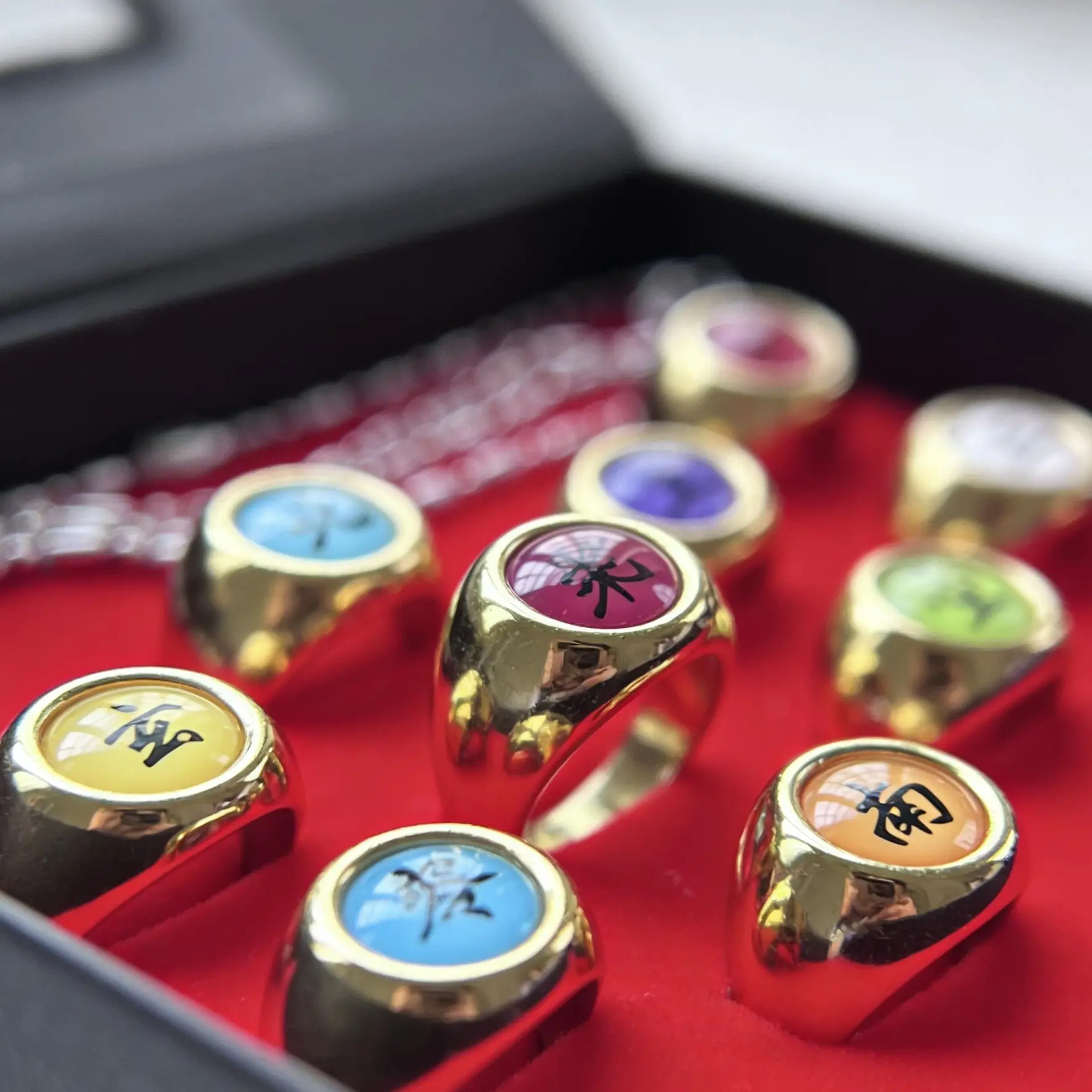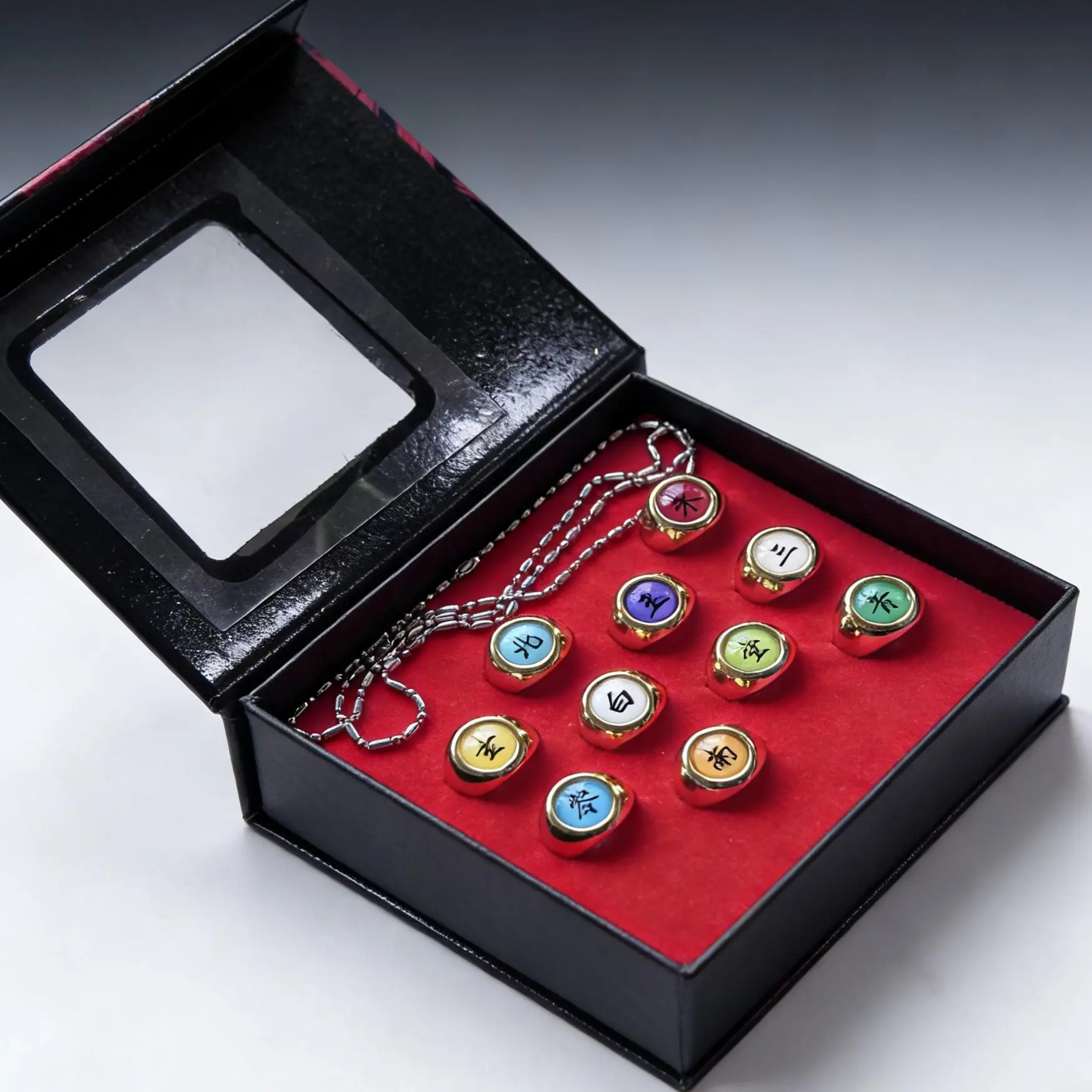 Dive into the world of Naruto with this 10-piece Akatsuki Rings Set. Perfect for cosplay enthusiasts, these rings capture the essence of the anime. Each piece is designed for fans to wear and showcase their love for Naruto. The set includes a necklace chain, making it a 2-in-1 wearable jewelry gift. Ideal for gatherings and events, this set is a must-have for any Naruto aficionado.