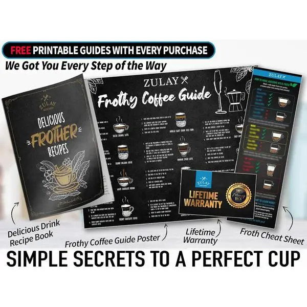 ·PROVEN AND TRUSTED QUALITY: Made with high-quality materials, this coffee frother handheld works on all types of milk—whole, almond, soy, cashew, or cream. Backed by the Zulay Lifetime Guarantee, it won’t rust or break.