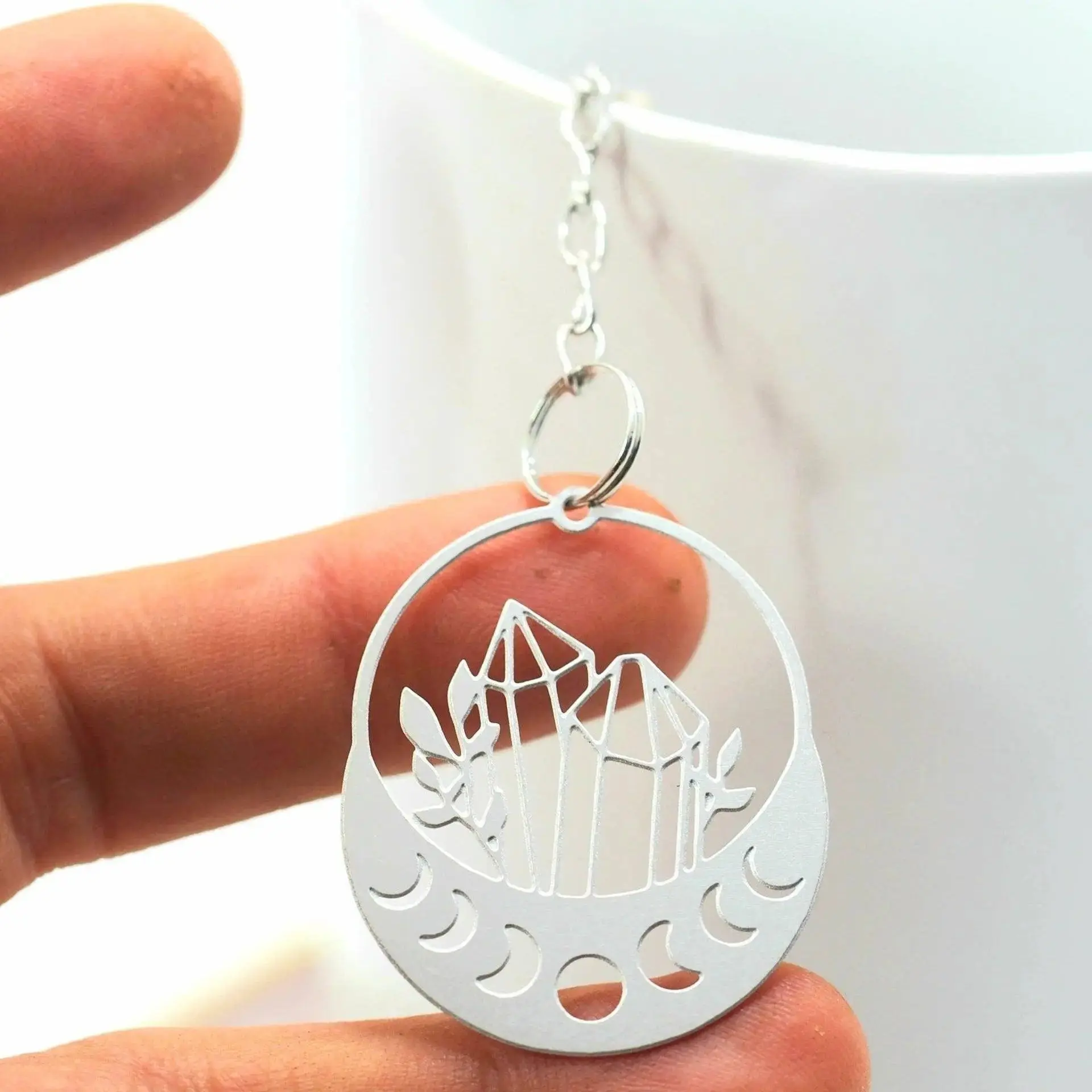 Harness lunar energy with the Crystals & Moon Cycle Tea Infuser by Loveyenergy & Blessings. Crafted from stainless steel, this celestial infuser transforms your tea ritual into a sacred moment of lunar connection.
