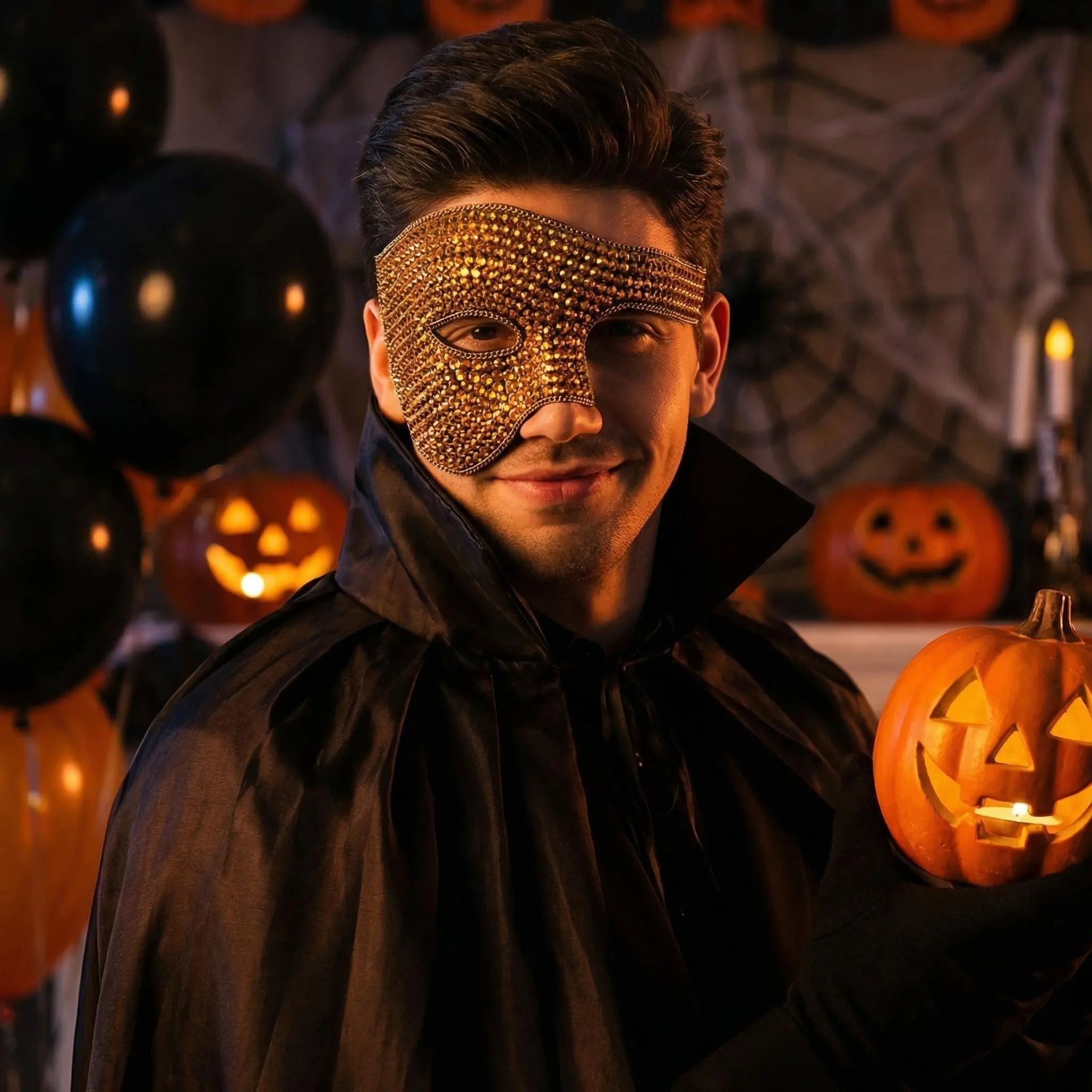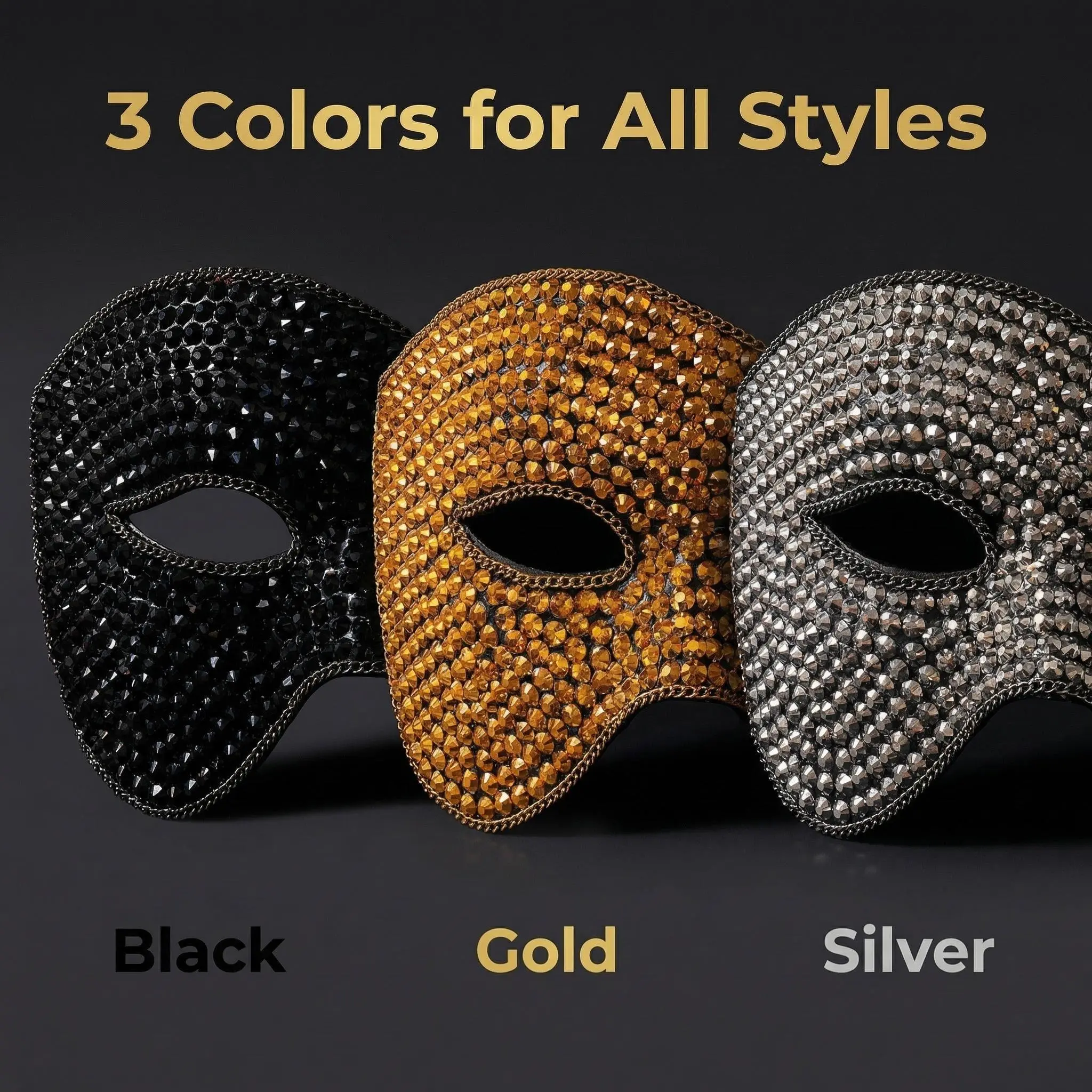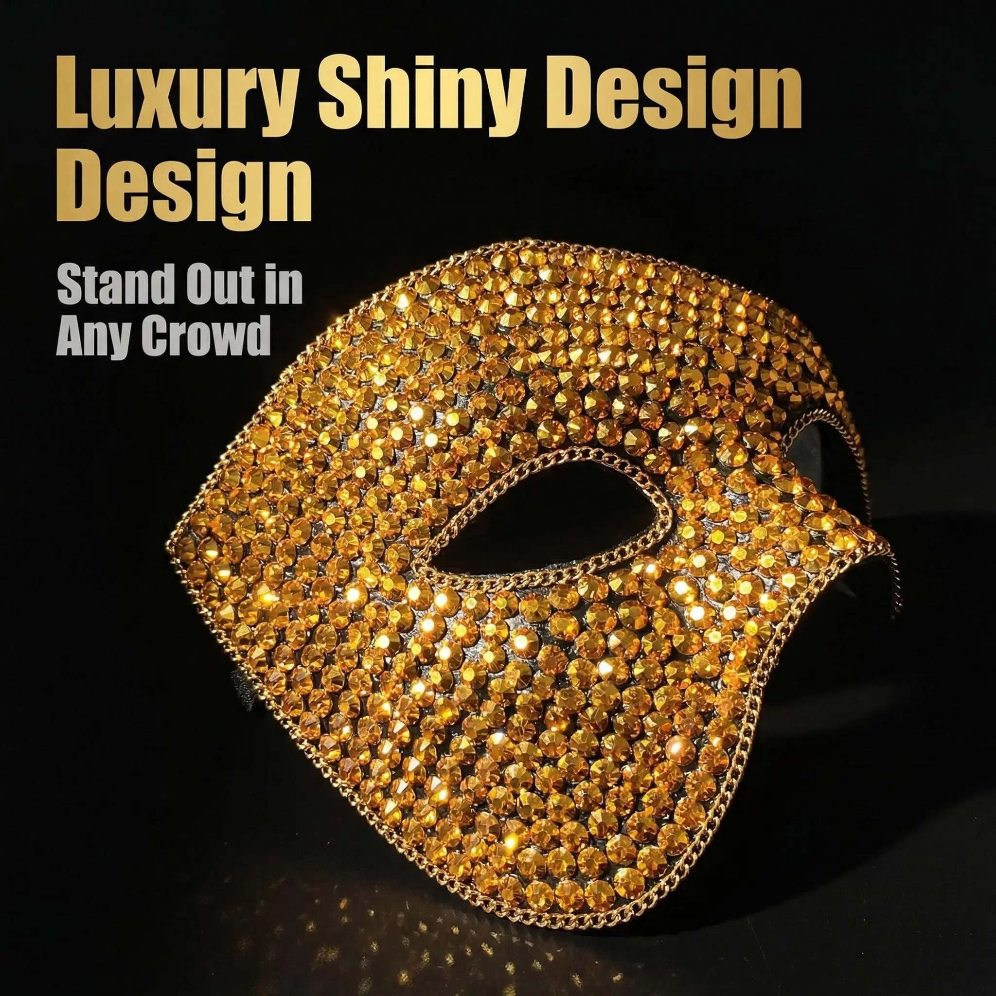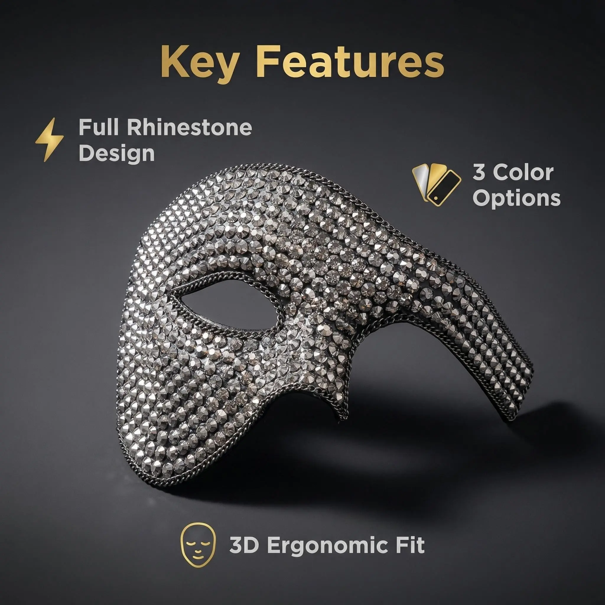 Half-Face Diamond Mask for Men and Women: DIY Handmade Rhinestone-Embellished Luxury Eye Masks for Carnival, Birthday Parties, and Holiday Performances