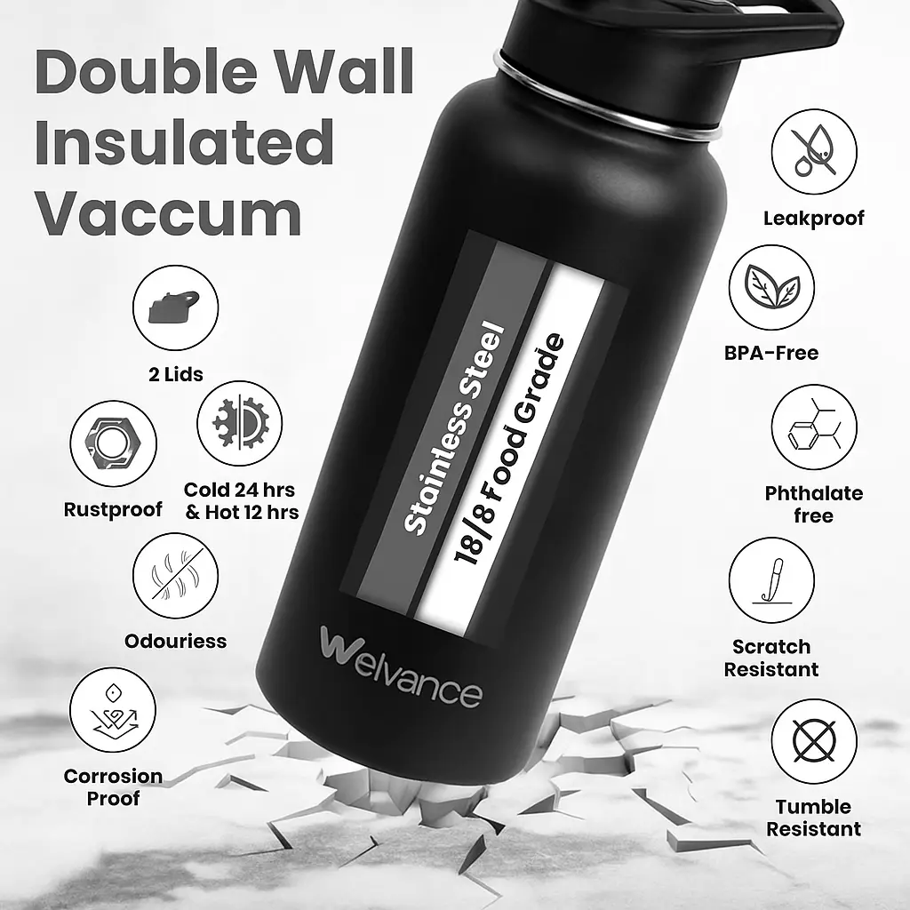 Stay hydrated with this 2-pack of Welvance 32oz insulated stainless steel water bottles. Each bottle includes 2 lids, so you receive 2 bottles and 4 total lids.