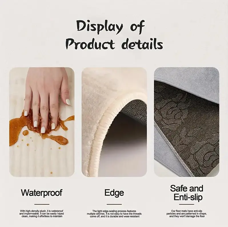 Non-Slip Rug Backing: The bottom of the bedroom rug adopts anti slip TPE rubber, which can keep the rug in place and is very safe for the elderly and children at home; No need to worry about falling or constantly put the rug back in place after party.