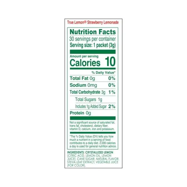 ·Stay Happily Hydrated: True Lemon Strawberry Lemonade Drink Mix makes it easy to add the refreshing taste of delicious strawberry lemonade to your water, so you drink more water throughout your day; just add one packet to 16 ounces of water