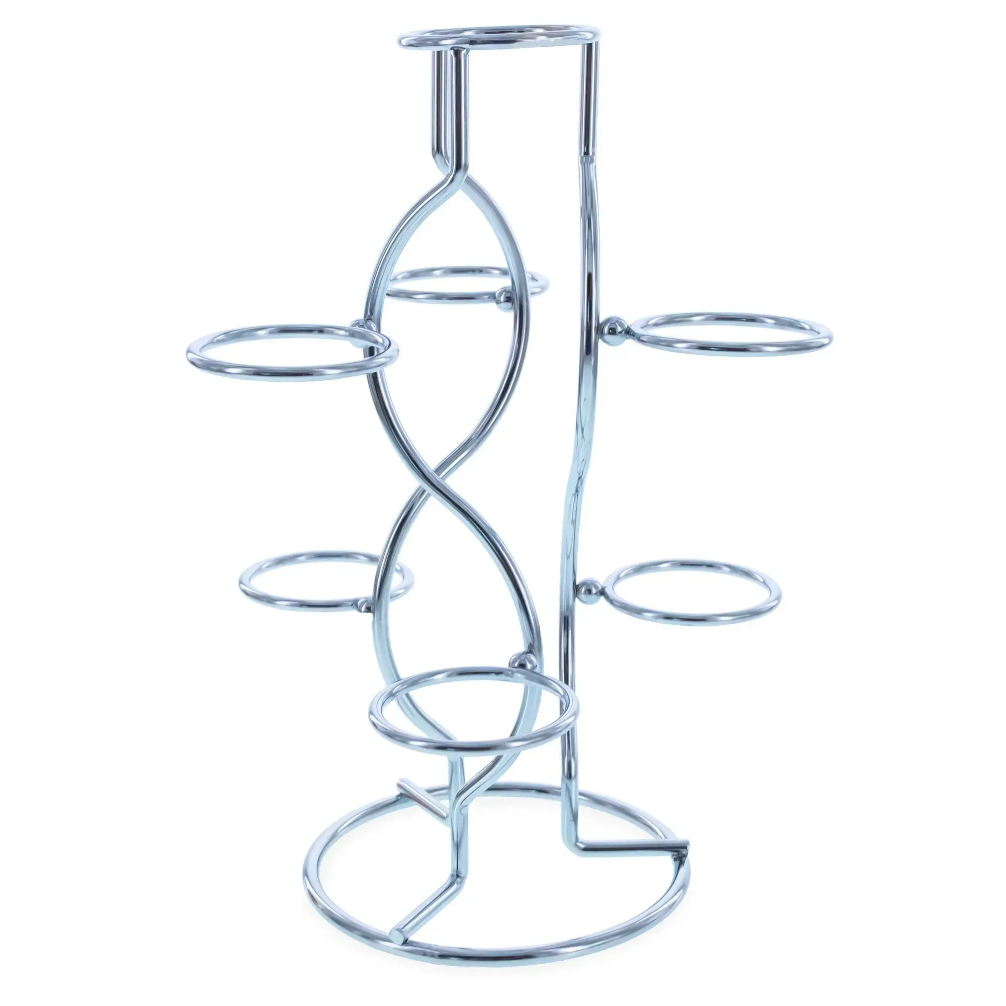 Crafted from durable metal with a radiant silver-tone finish, this stand offers both stability and sophistication. Each of the seven circular holders is thoughtfully spaced for balance and clear visibility, allowing each item to stand out beautifully.