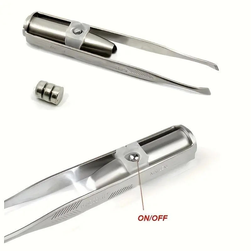 [Upgraded Brow Tweezers] Portable Upgraded LED Light Brow Tweezers | Precision Makeup Tool with Intelligent Design for Perfect Eyebrow Shaping and Fake Lash Application, Battery Powered, Brush Head | Includes Button Battery