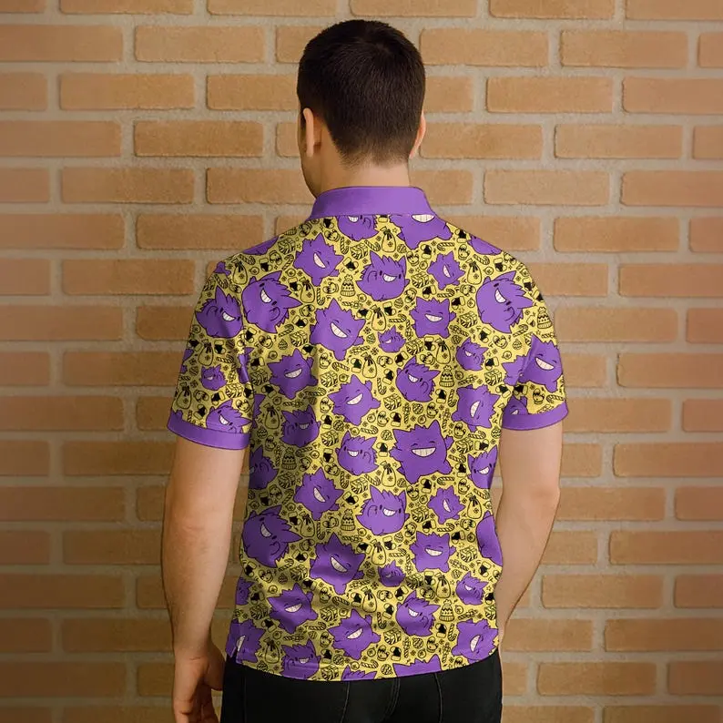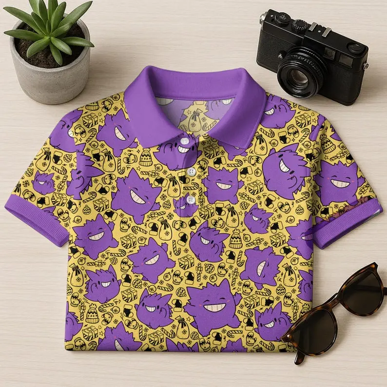 GenGar Polo Shirt, Cute Kawaii Ghost Pattern Polo Shirt, Funny Halloween Style Shirt, GenGar Shirt Gifts