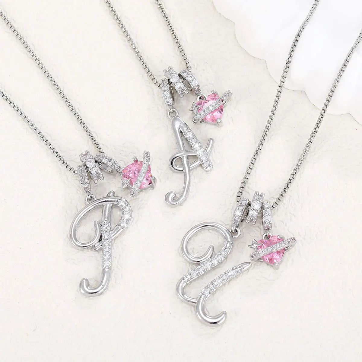 Initial Heart Necklace for Women | 18K Plated | Pink Cubic Zircon Pendant with Diamond Inlaid Letter | Fashion Luxury Jewelry | Perfect Gift for Christmas, Birthdays, Anniversaries & All Holiday Occasions