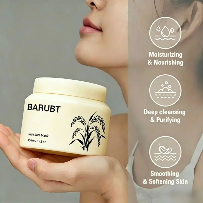 Experience the power of rice and jam in this exfoliating mask. It provides the necessary nutrients and moisture for your skin. Transform your skincare routine with this versatile product. Enjoy the benefits of deep nourishment and hydration.