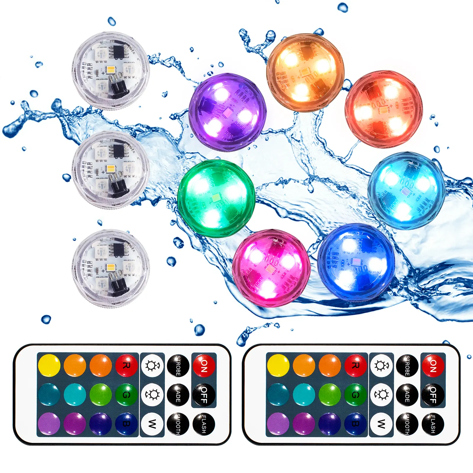 Color-Changing Remote Control — Each pack includes two infrared remote controls. You can choose from 13 different colors and 4 color-changing modes (flash/strobe/fade/smooth). You can control an individual light or a group of lights—different colors or the same color.