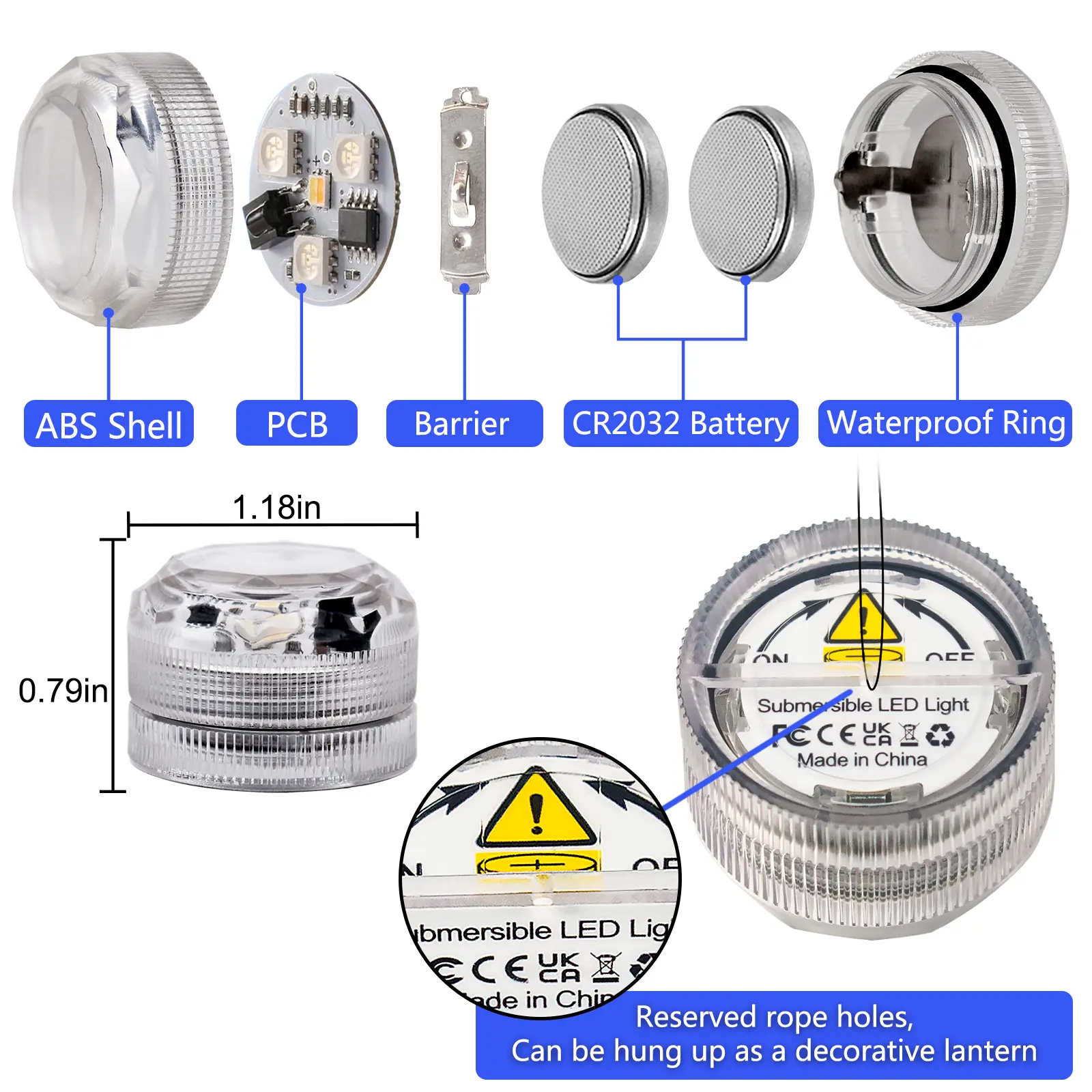 Battery Powered: Powered by two high-capacity CR2032 batteries. Provides high current for lighting. So it’s always brighter than the others. The battery can operate continuously for more than 40 hours, which is the longest on the market. The battery is replaceable.