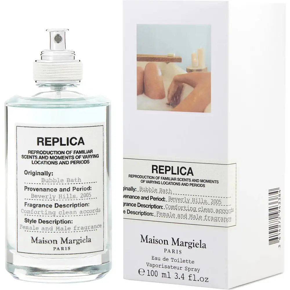 Replica Bubble Bath Eau De Toilette Spray delivers a crisp, clean just-bathed effect, blending soap-bubble accord and creamy coconut milk with rose superessence and soft white musk for a fresh, comforting finish. Bright bergamot and pink pepper add an airy lift, while lavender and jasmine lend a calm, balanced feel.Worn on pulse points or layered with other fragrances, it stays light and close to the skin while the patchouli base adds subtle depth and helps extend wear. The result is an easy, polished scent that supports wind-down moments, refreshes everyday routines, and leaves skin smelling smooth, pure, and quietly confident.