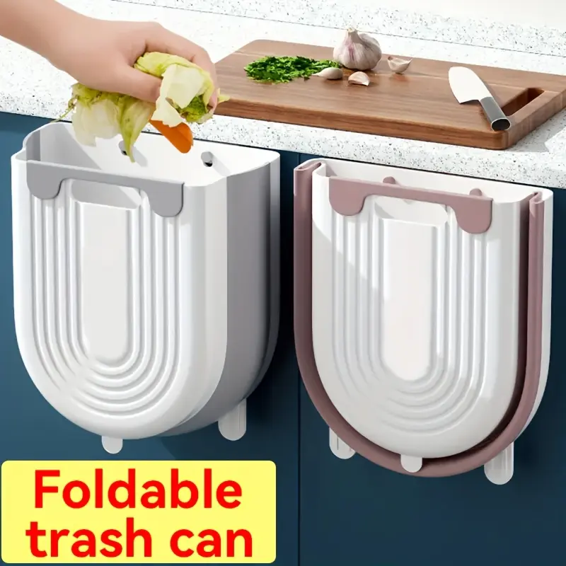 [1pc Foldable Trash Can] 1pc Compact Foldable Trash Can | Space-Saving Modern Minimalist Rectangular Design, Durable Plastic Portable Countertop Bin for Kitchen & Bathroom, No Electricity Needed