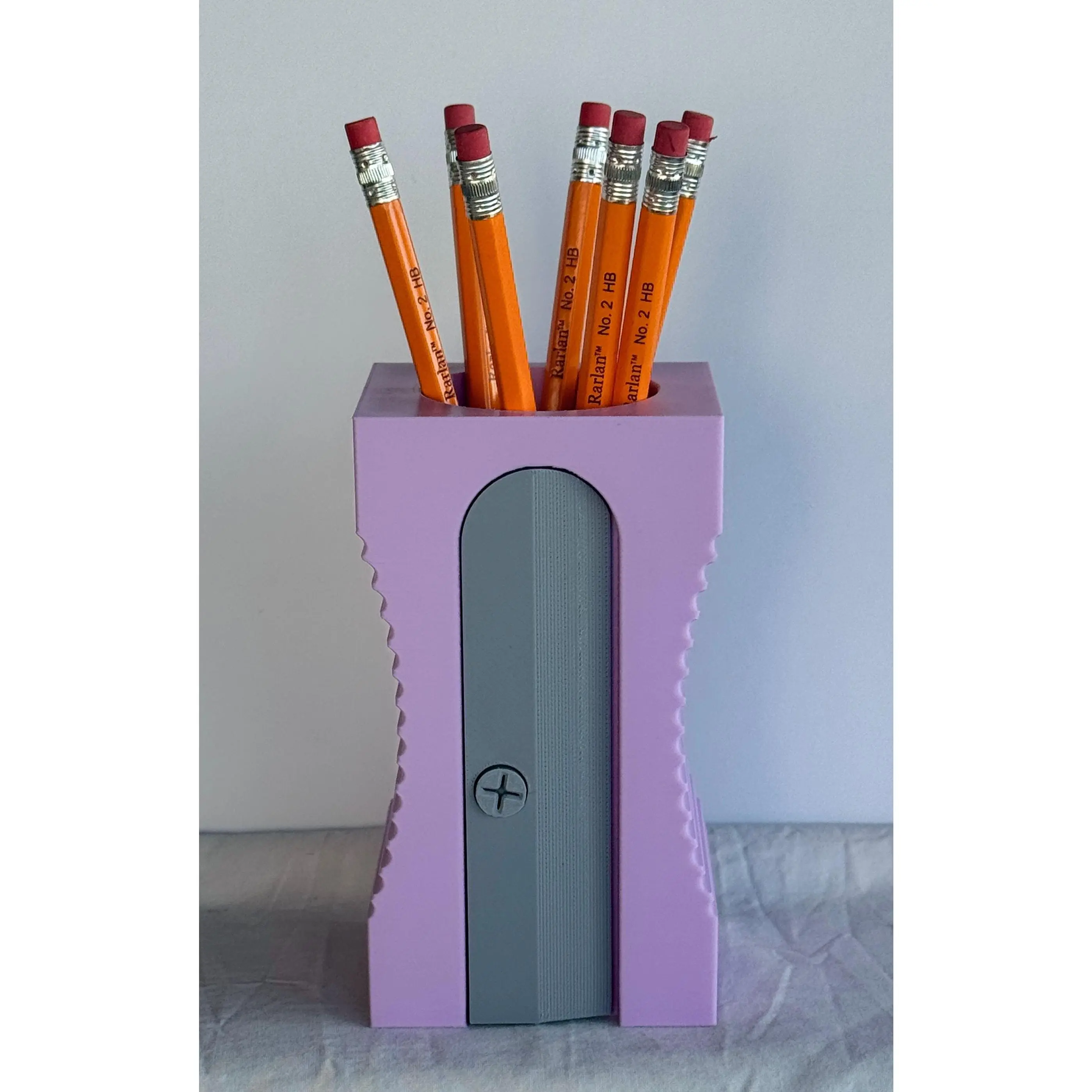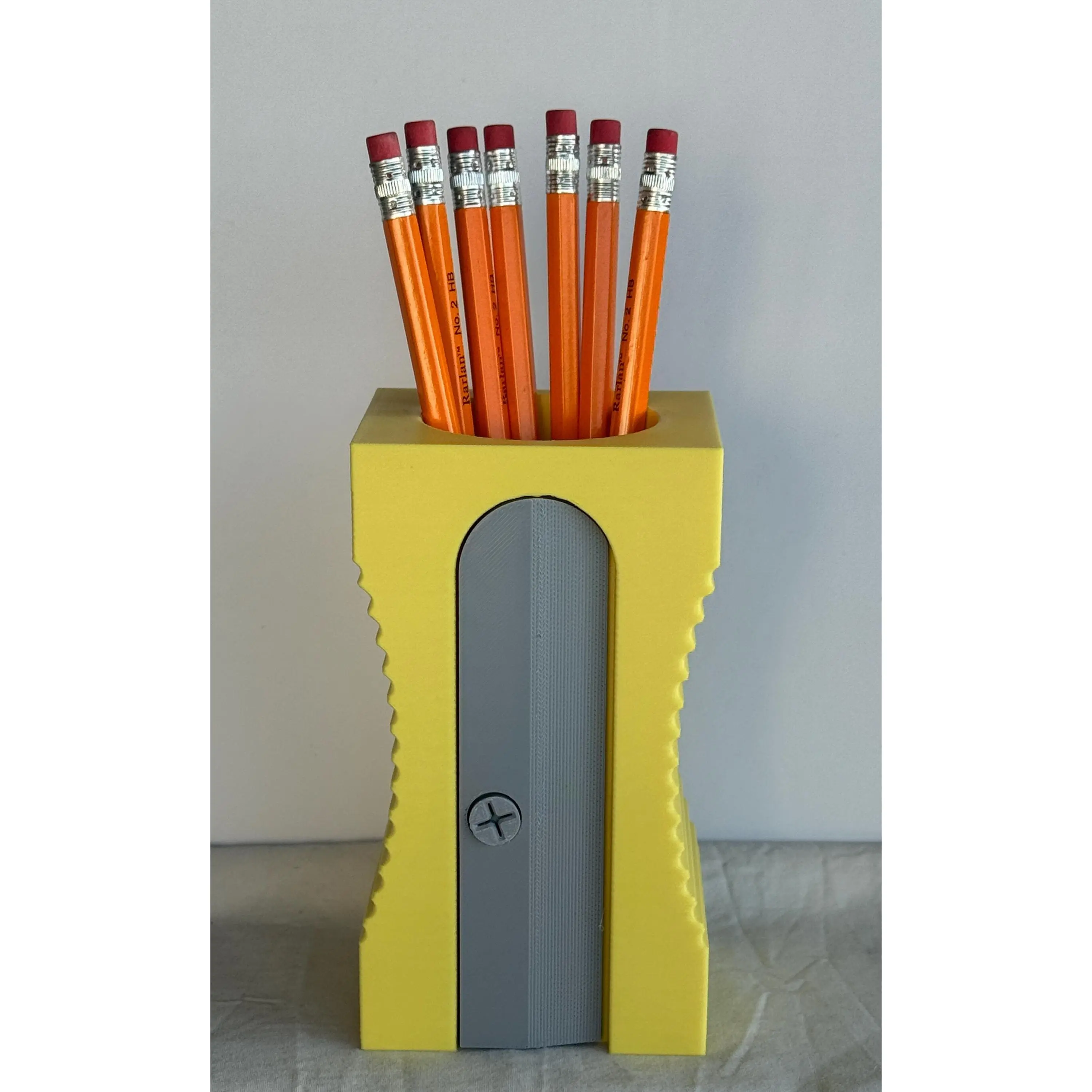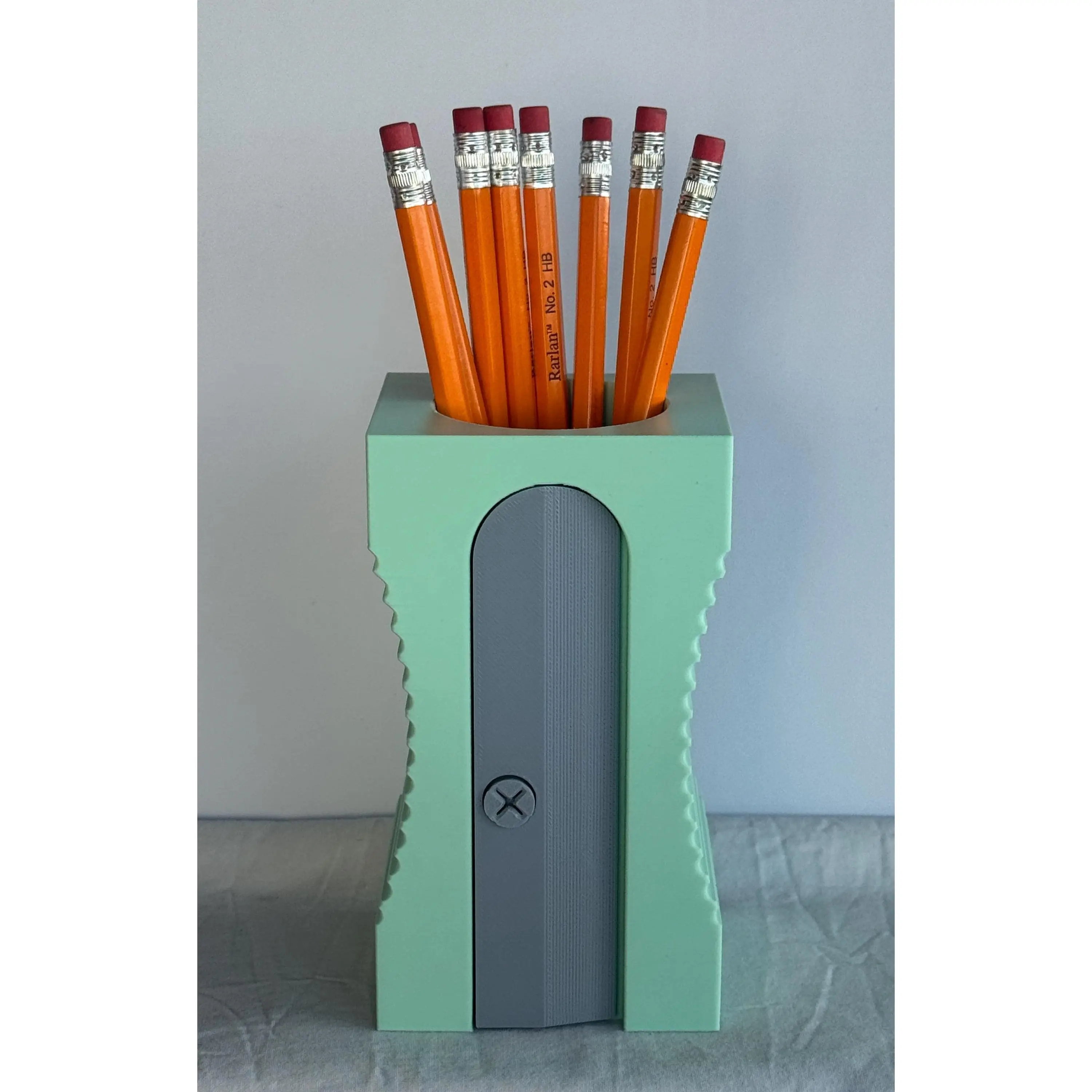 Transform your workspace with this Giant Pencil Sharpener Desk Organizer! Designed to look like a vintage classic, this 3D-printed pen and pencil holder is the perfect statement piece for teachers, artists, and office enthusiasts alike.