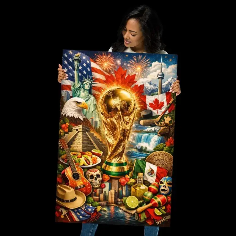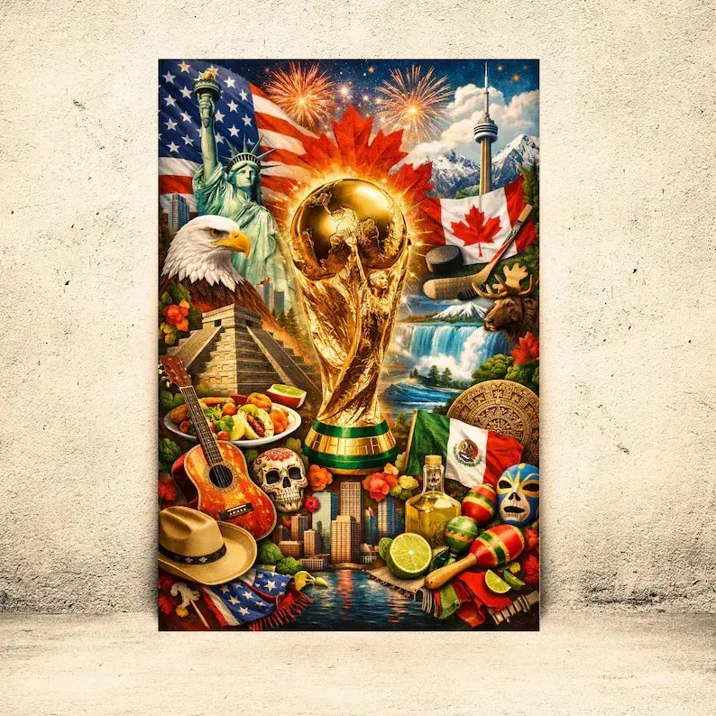 [Unframe] World Cup 2026 Poster | Retro Travel USA Mexico Canada | Soccer Wall Art | Vintage Football Print | Sports Fan Decor