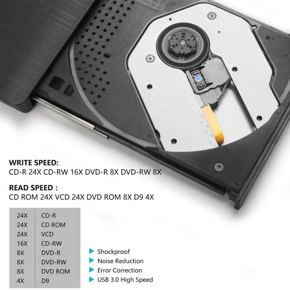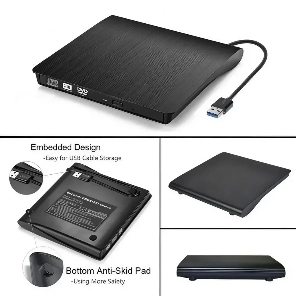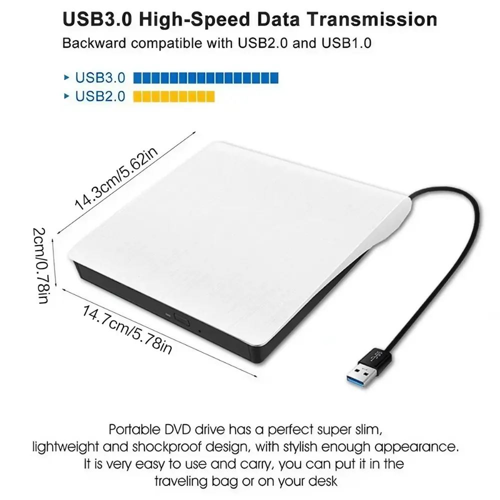 USB 3.0 Ultra-Thin External CD/DvD Burner Drive for Laptop & PC, Portable DVd-ROM Rewriter with High-Speed Data Transfer, Plug & Play, No Driver Needed, Compatible with Windows & Mac.