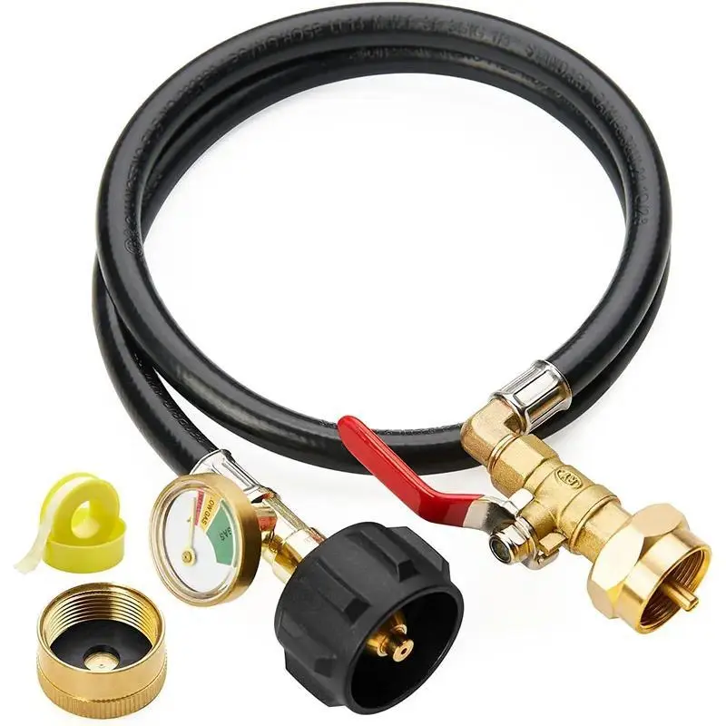 Designed for camping, grilling, and outdoor activities, this adapter hose offers a safe and efficient way to refill propane tanks. The combination of a pressure gauge and shut-off valve ensures a controlled and secure refilling process. Perfect for all your outdoor adventures.